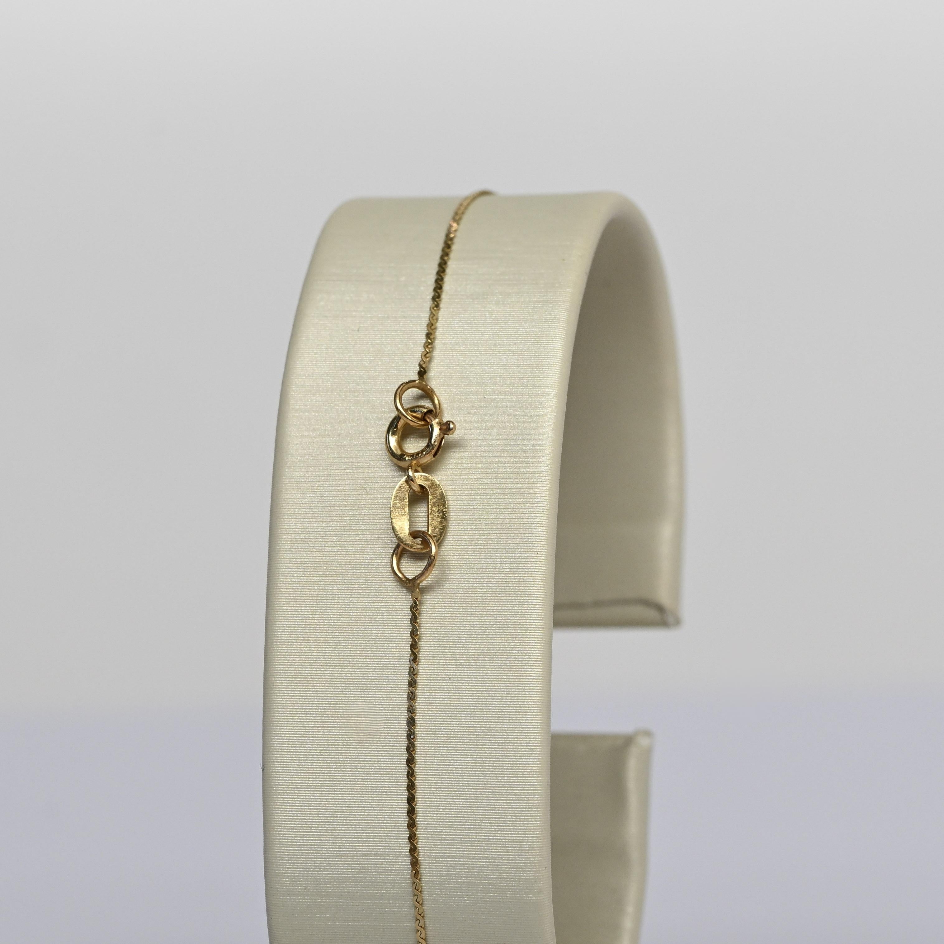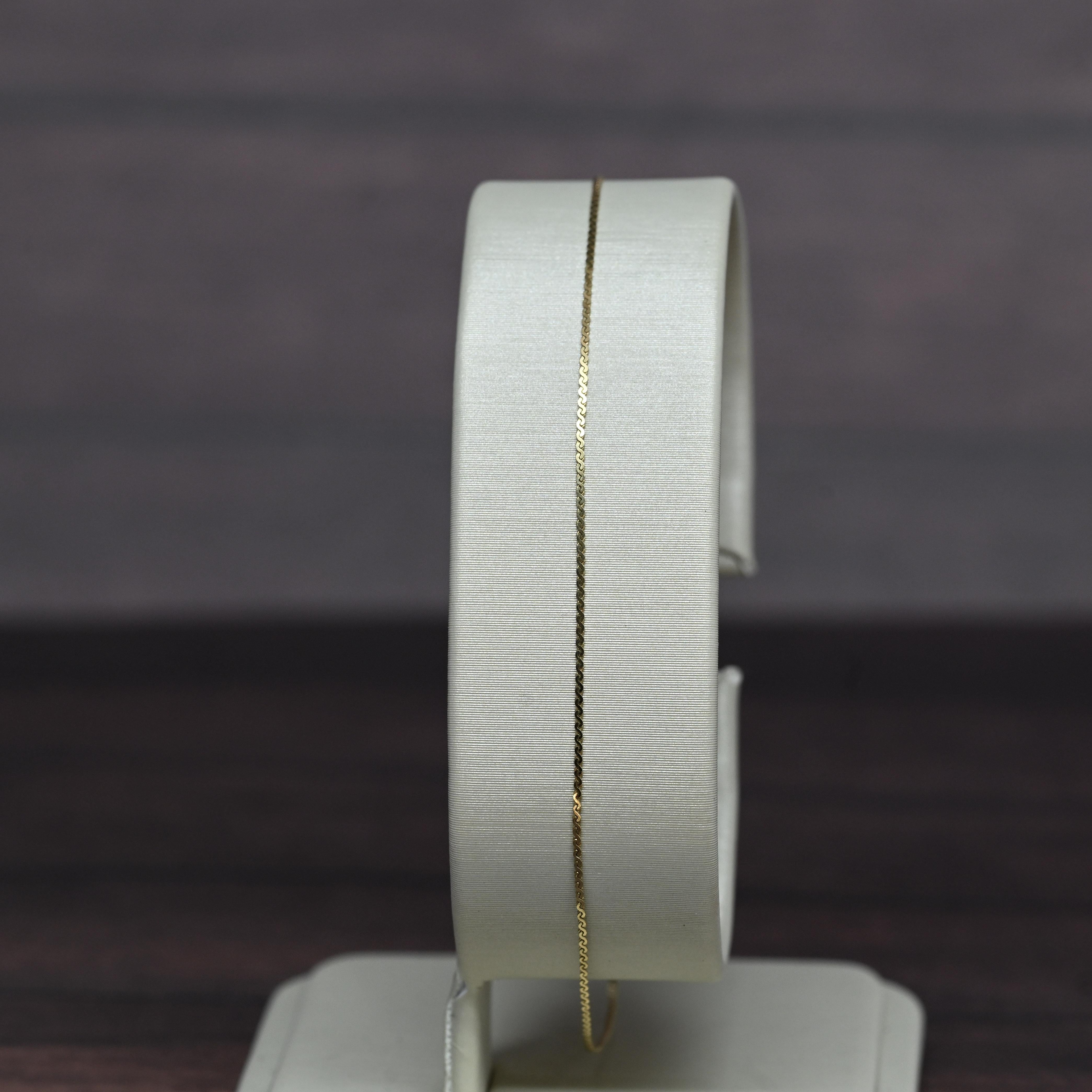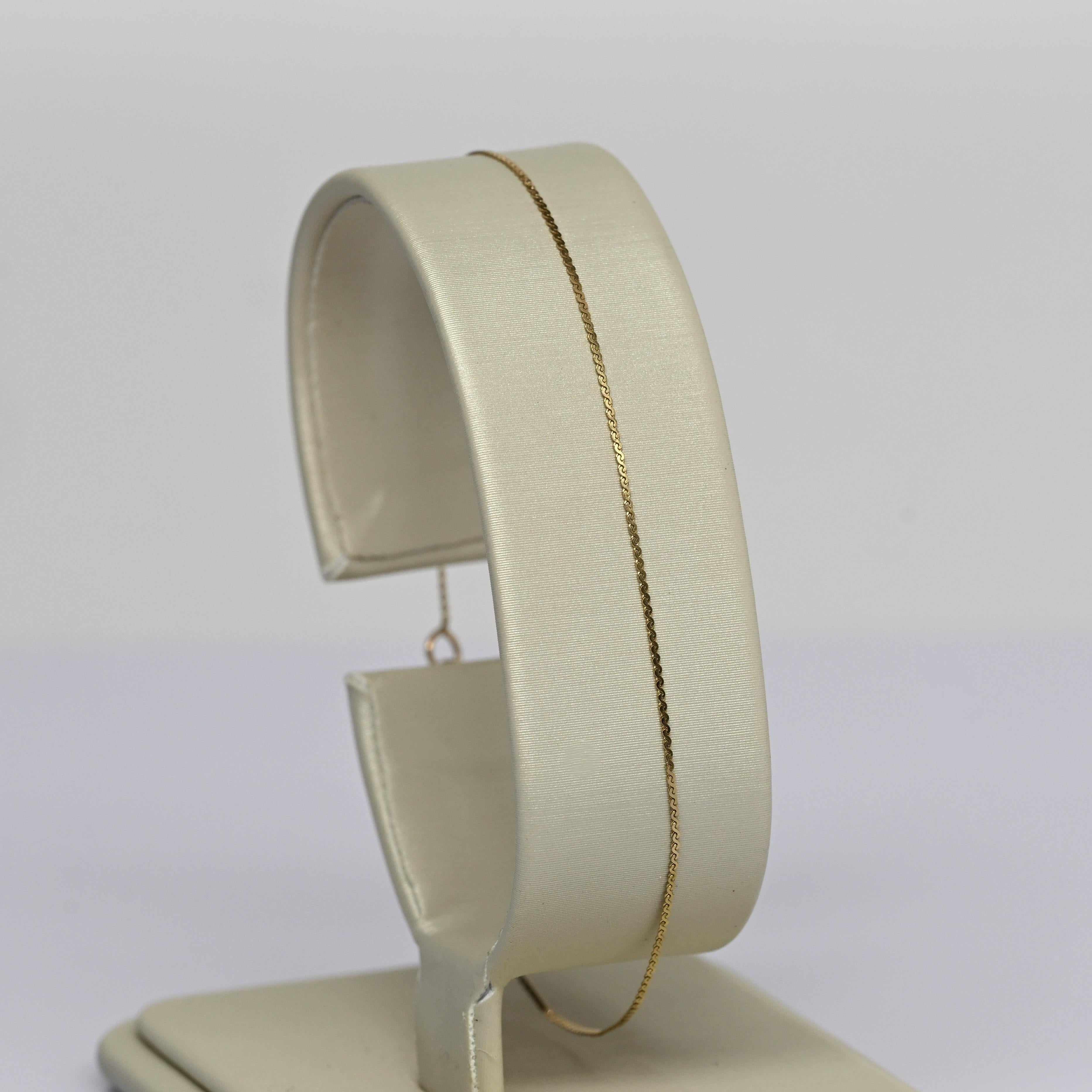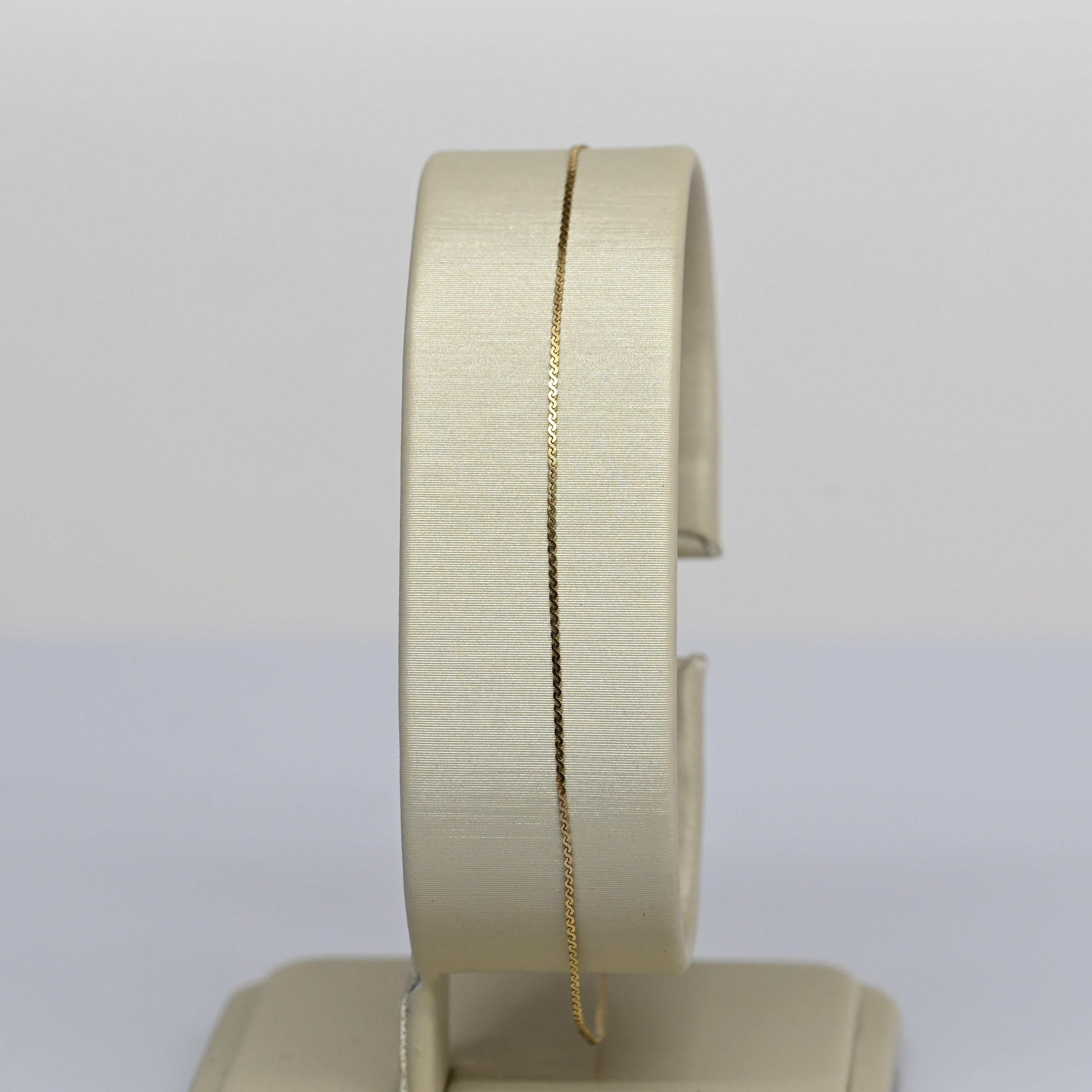 This vintage 7-inch bracelet is crafted in luminous 14K yellow gold and features a delicate 0.7mm S-link design. Each smoothly curving link catches the light beautifully, creating a refined shimmer that’s perfect for everyday wear or elegant layering. Its slim profile lends a graceful, understated touch to any wrist. A timeless and versatile piece, this bracelet embodies classic sophistication with vintage charm.