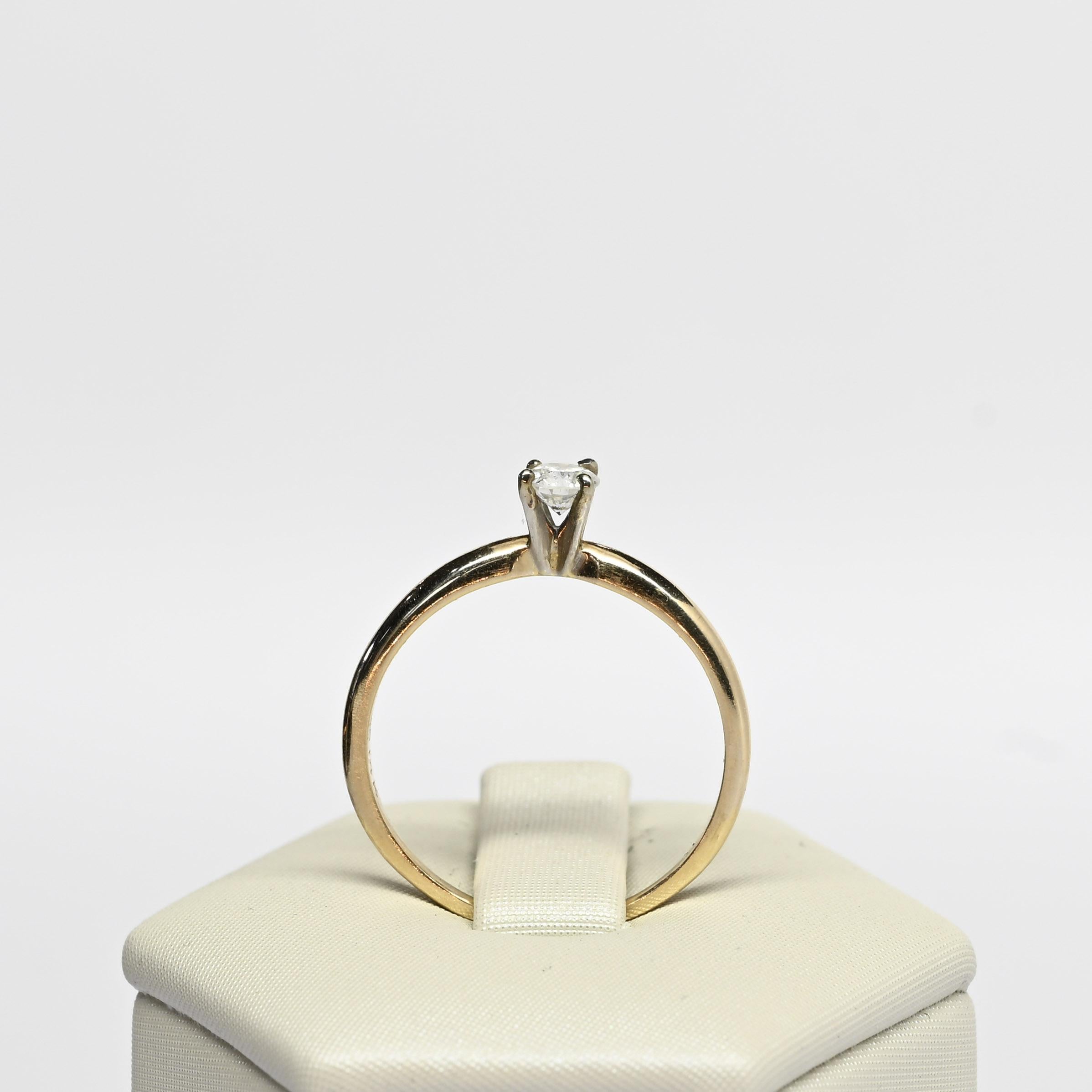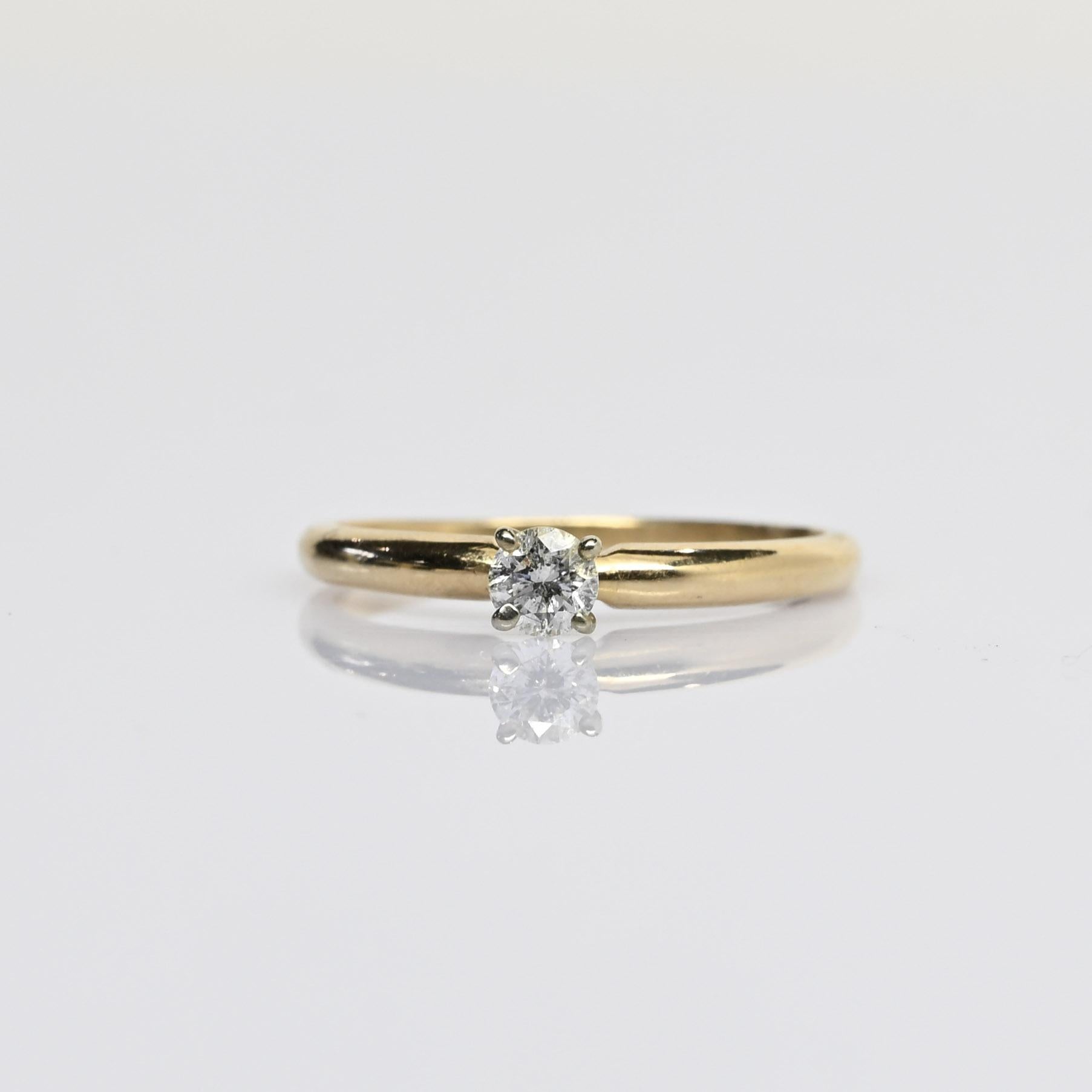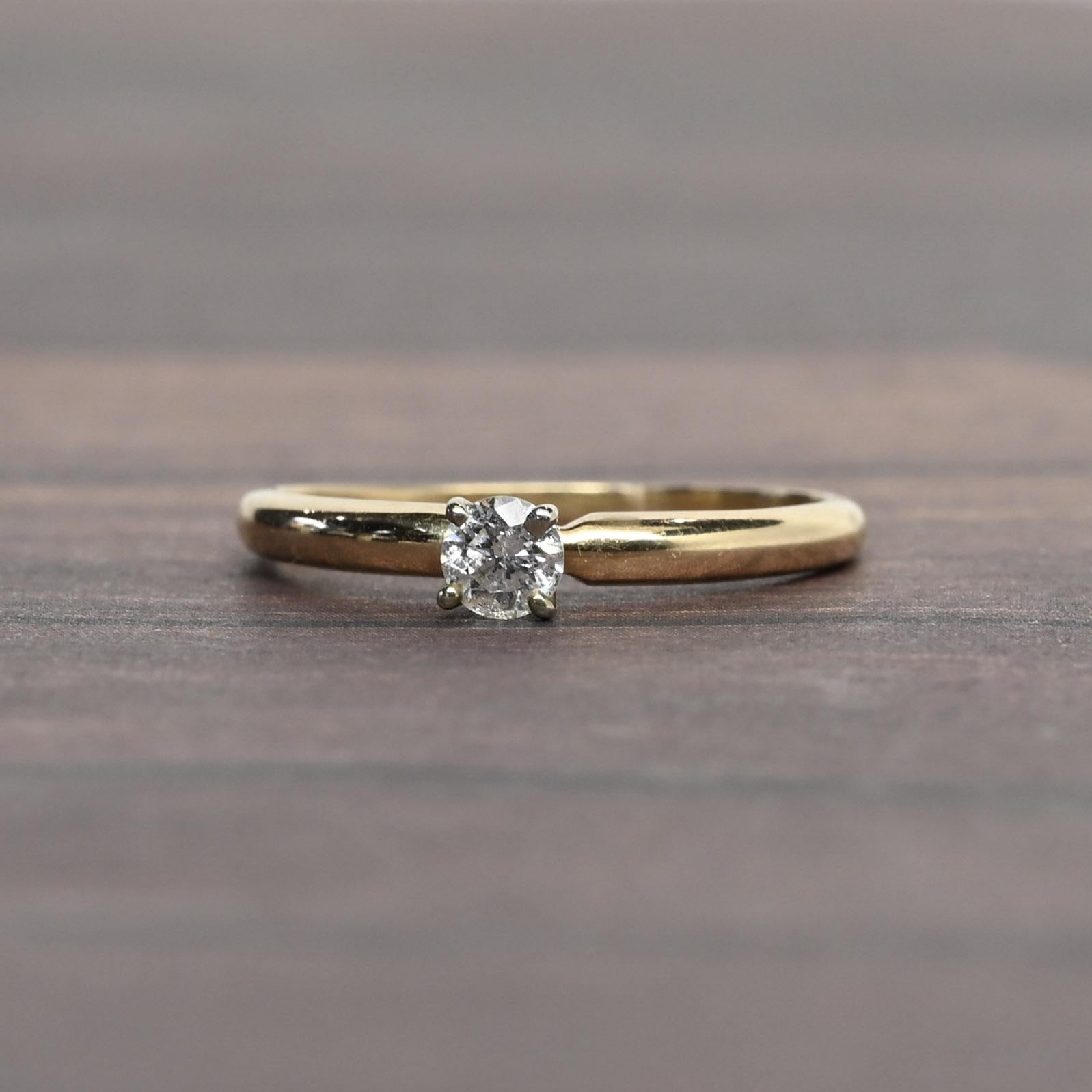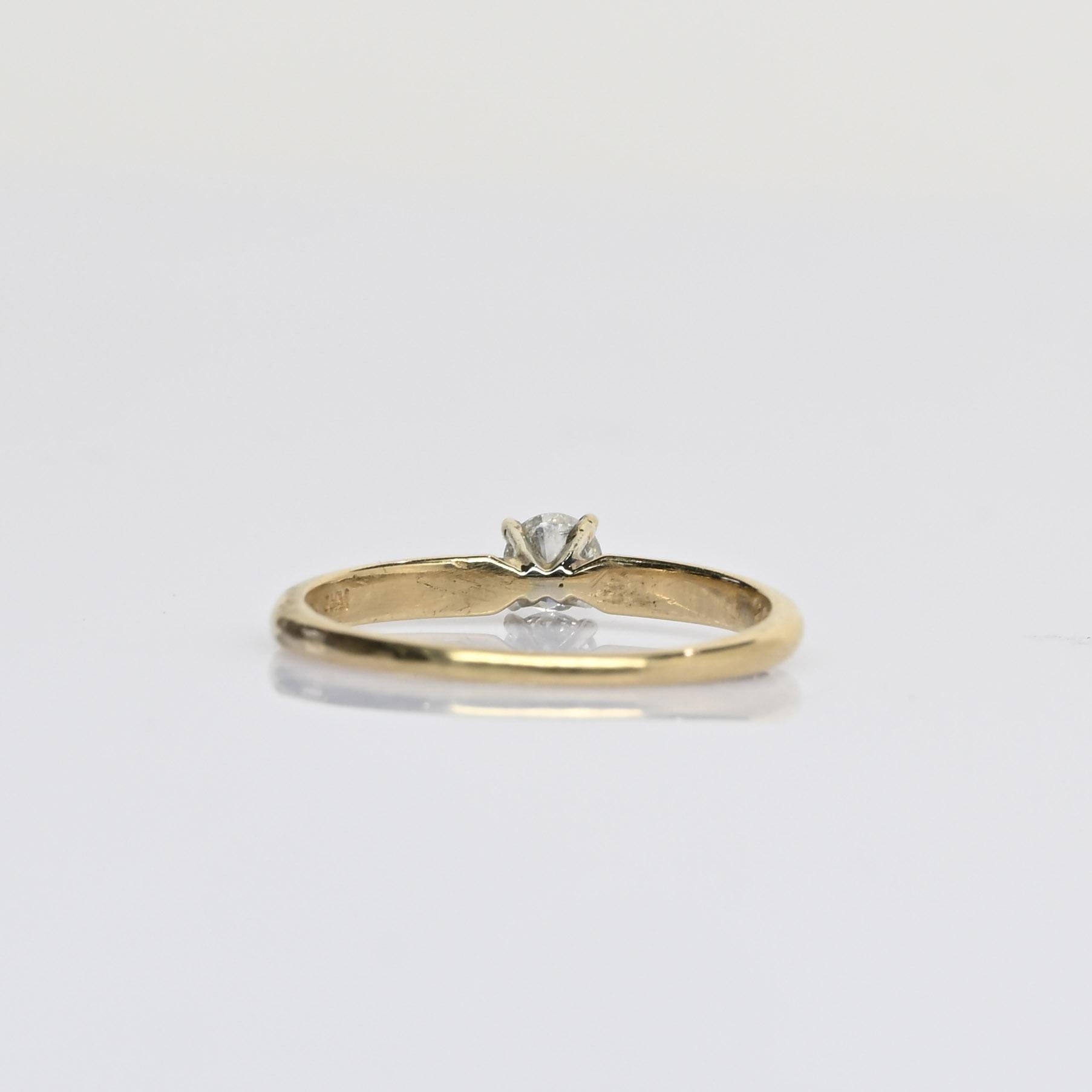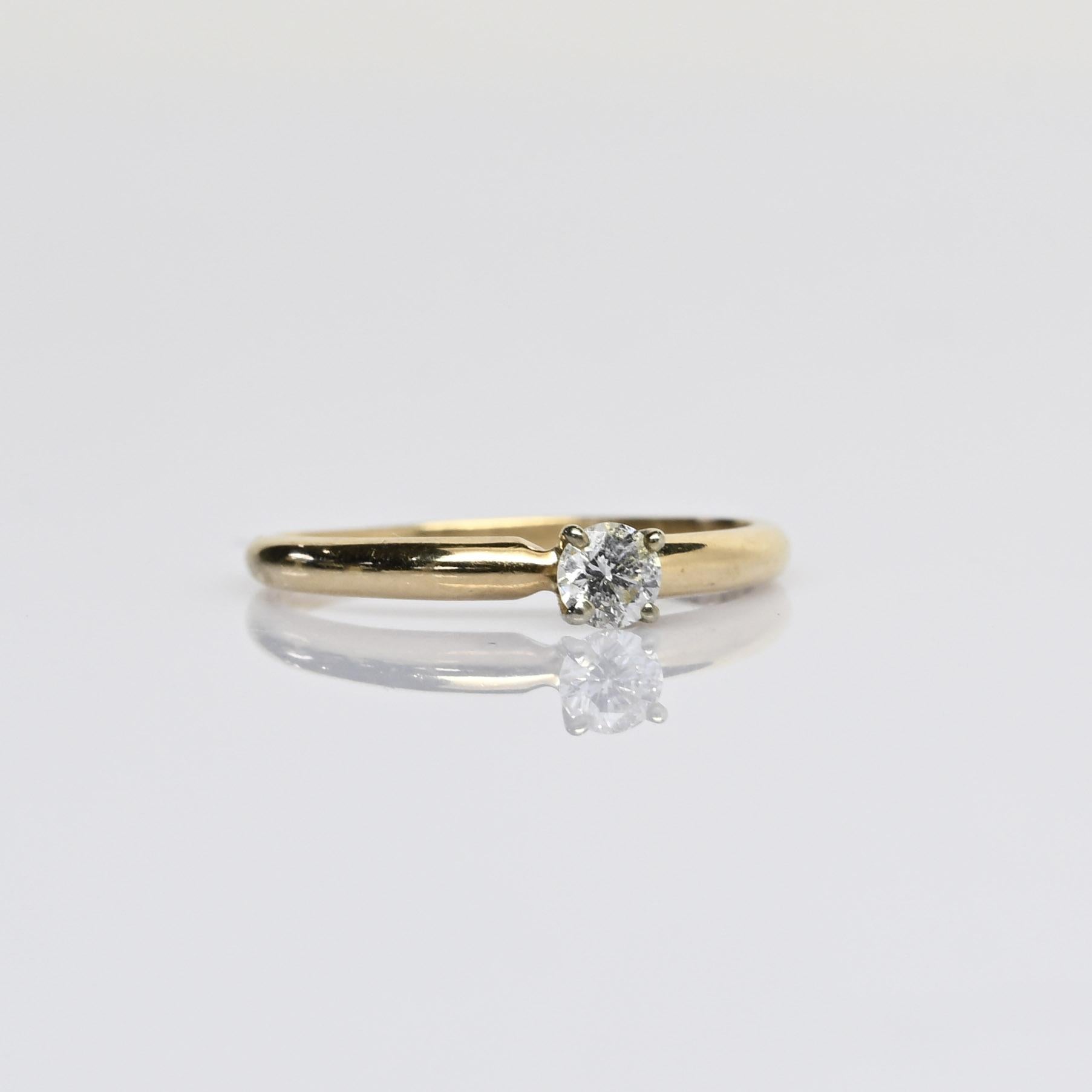 This elegant 0.18 carat round diamond solitaire ring is a timeless expression of classic beauty. The sparkling diamond is set in a secure four-prong setting, allowing maximum brilliance and light reflection. Crafted in warm 14k yellow gold, the sleek and polished band enhances the stone’s natural radiance. Perfect as an engagement ring, promise ring, or everyday touch of luxury, this piece embodies understated sophistication.