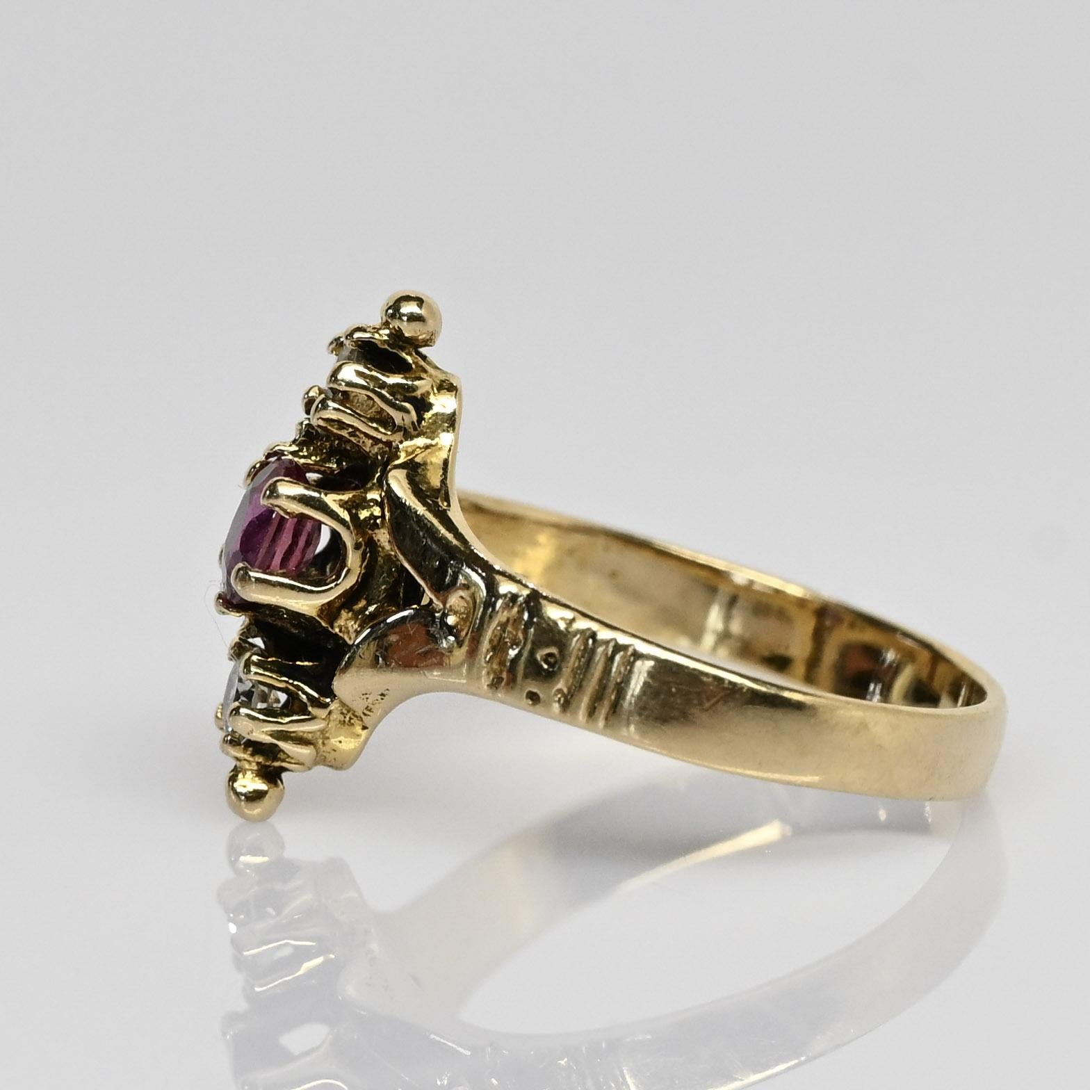 This Victorian ruby and diamond shield ring exudes timeless elegance and historic charm. Set in rich yellow gold, the design features a vibrant round ruby at its center, accented by sparkling old-cut diamonds above and below for a balanced, elongated look. The openwork shoulders and softly worn details reflect the craftsmanship of the era. A true antique treasure, this piece carries both romantic symbolism and heirloom beauty.