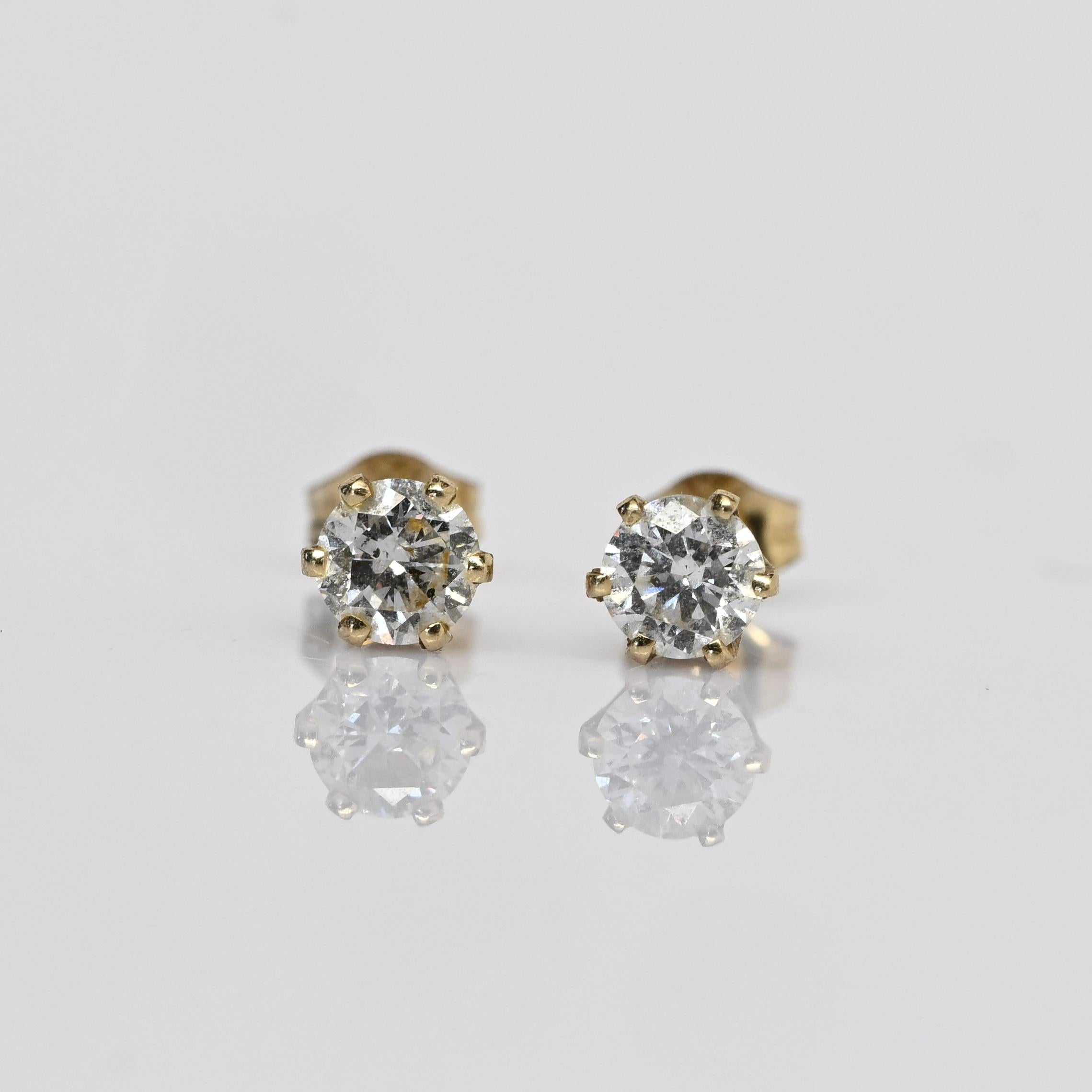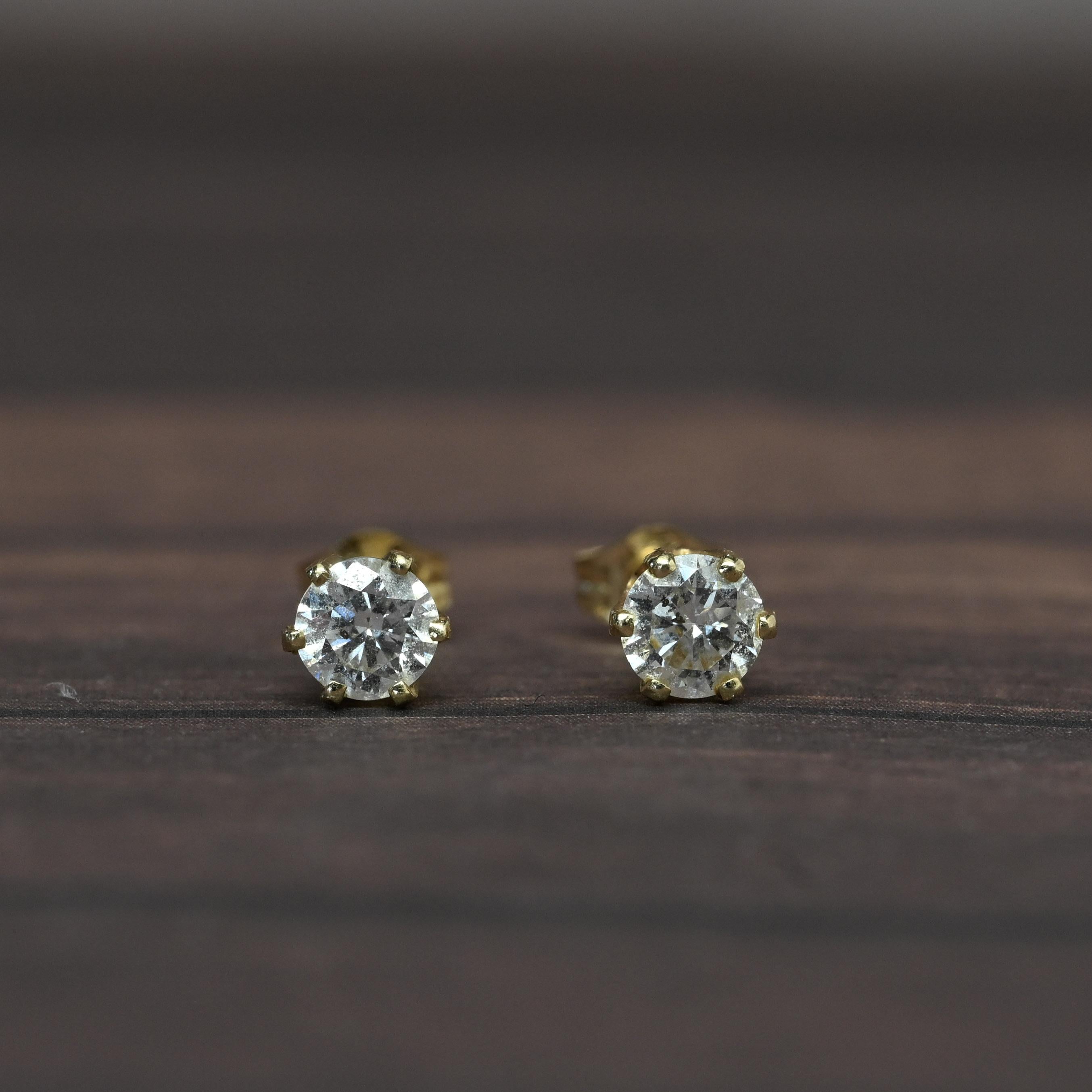 These timeless diamond stud earrings feature a total of 0.60 carats of natural round brilliant cut diamonds, set in secure 14k yellow gold four-prong settings. Their classic design allows the diamonds to sparkle with brilliance and fire, making them perfect for both everyday wear and special occasions. Elegant and versatile, these studs are a must-have staple in any fine jewelry collection.