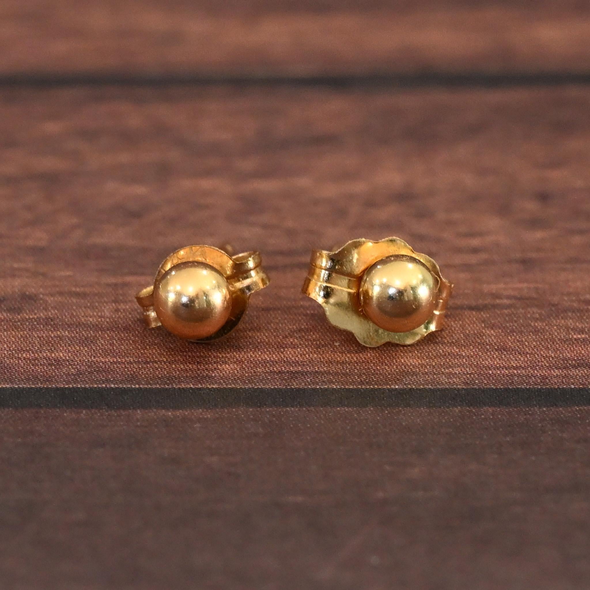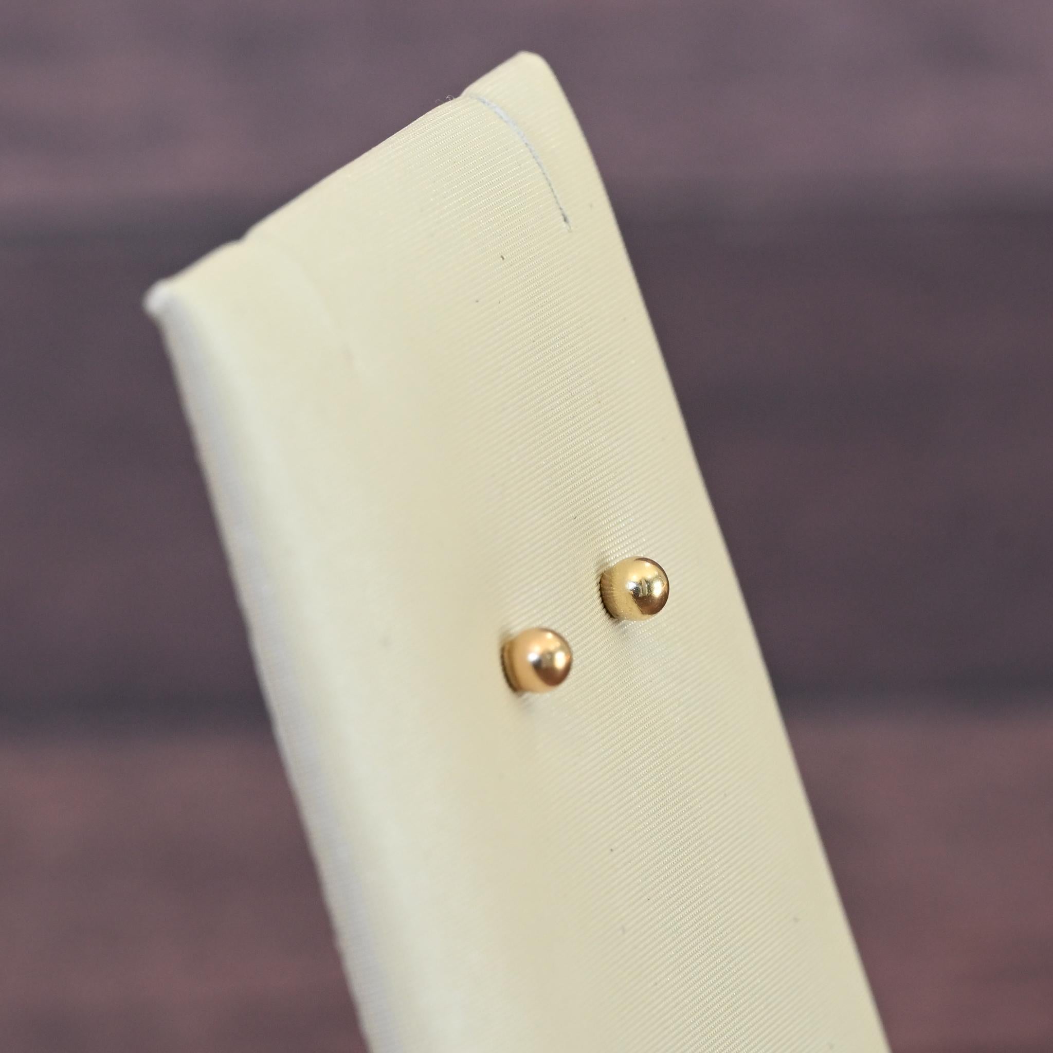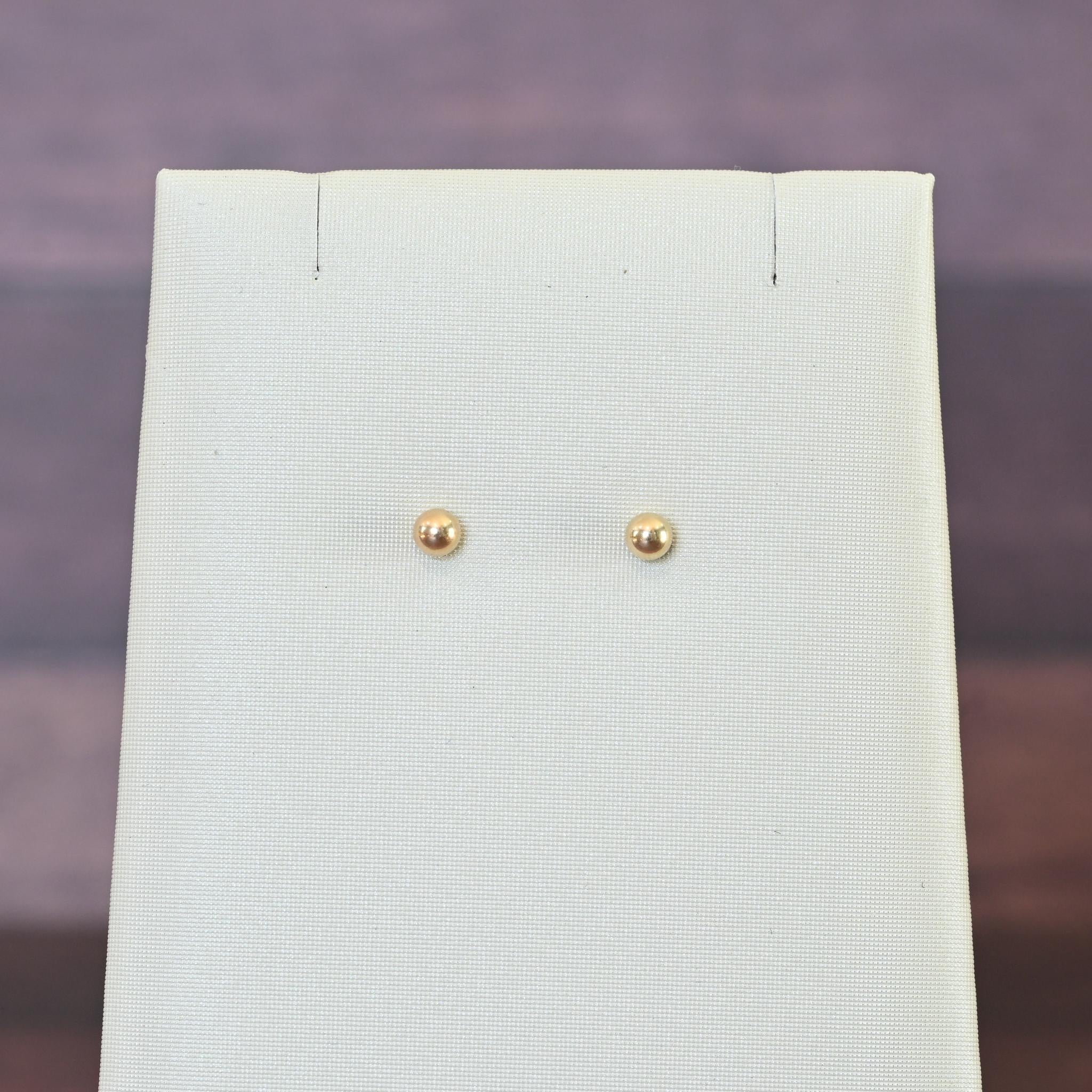 These classic 14k gold ball stud earrings measure 4.0mm, offering the perfect balance of subtle shine and timeless style. Their smooth, polished finish reflects light beautifully, making them versatile enough for everyday wear or layering with other earrings. A staple in any jewelry collection, these studs are lightweight, comfortable, and effortlessly chic.