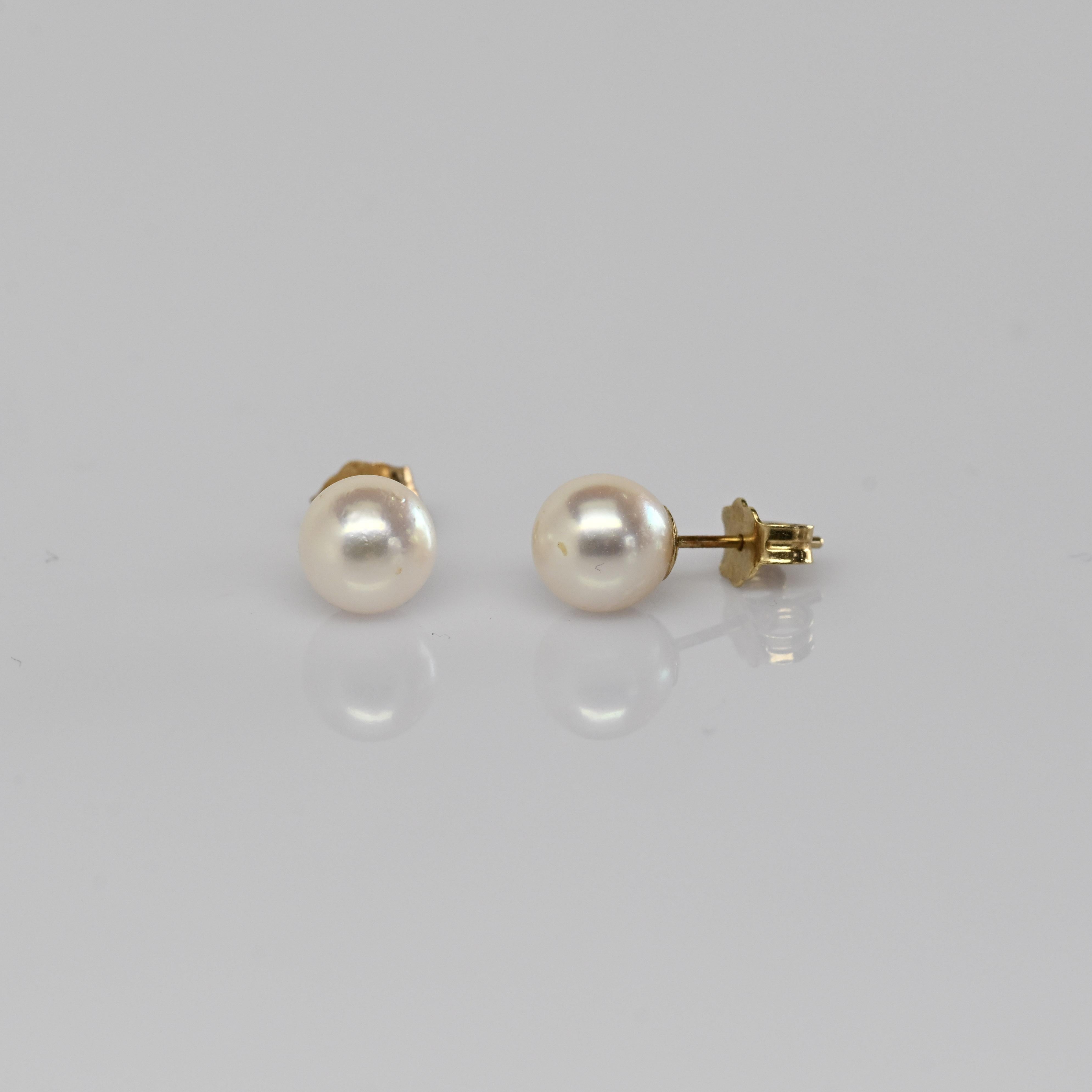 These classic stud earrings feature luminous 7mm cultured pearls with a beautiful soft luster that reflects timeless elegance. Set on solid 14k gold posts, their simple and refined design makes them a versatile staple for any jewelry collection. Perfect for everyday wear or special occasions, these pearl studs add a touch of sophistication to any look. A graceful and enduring accessory that never goes out of style.