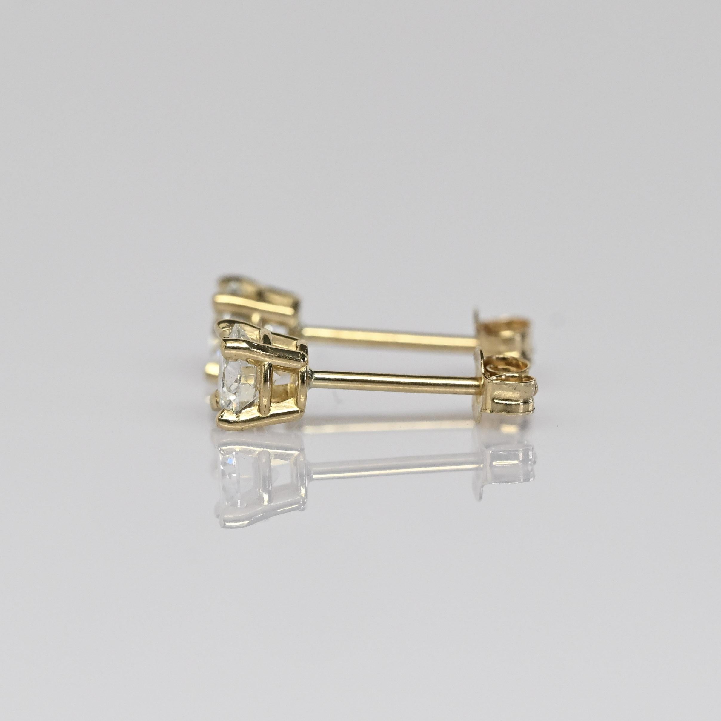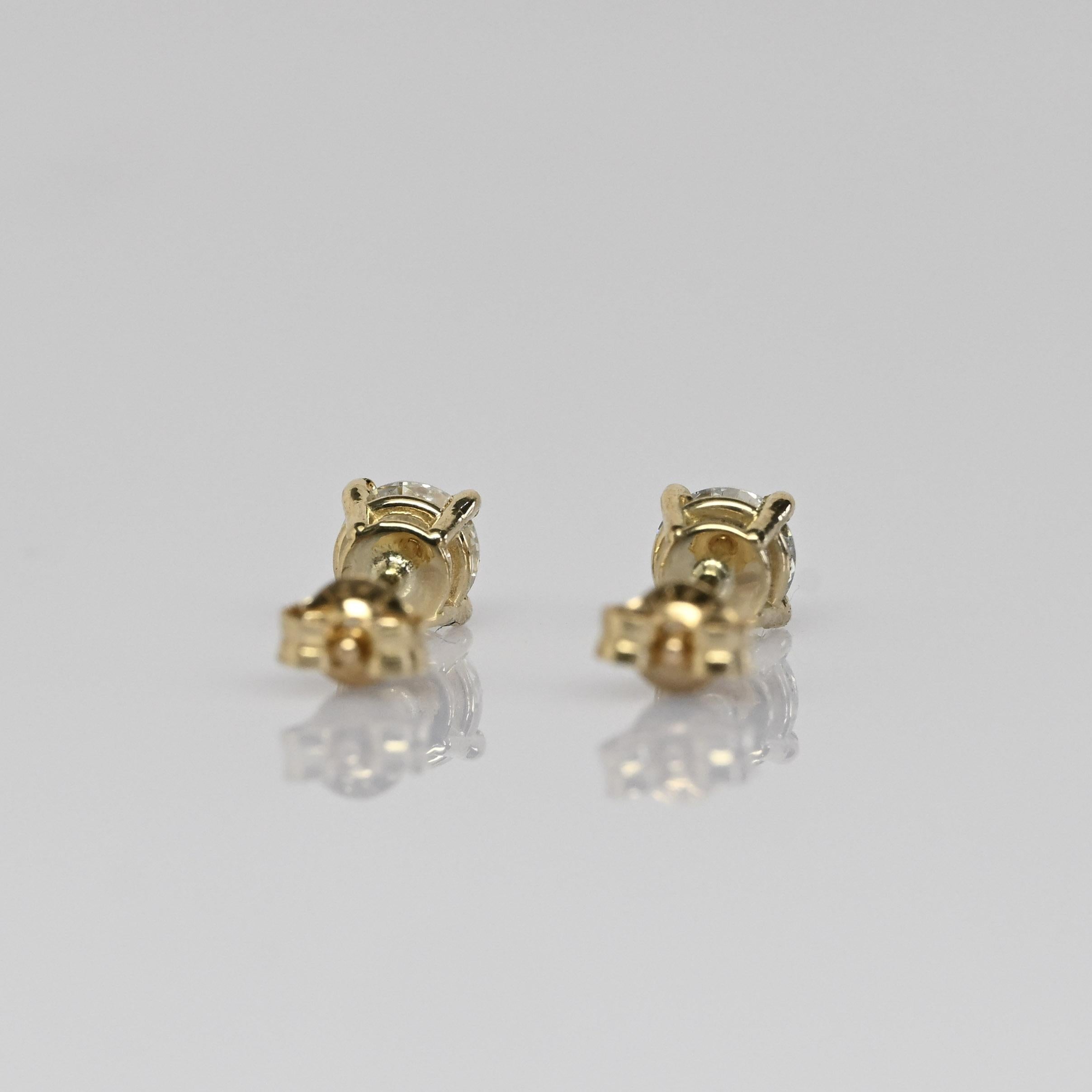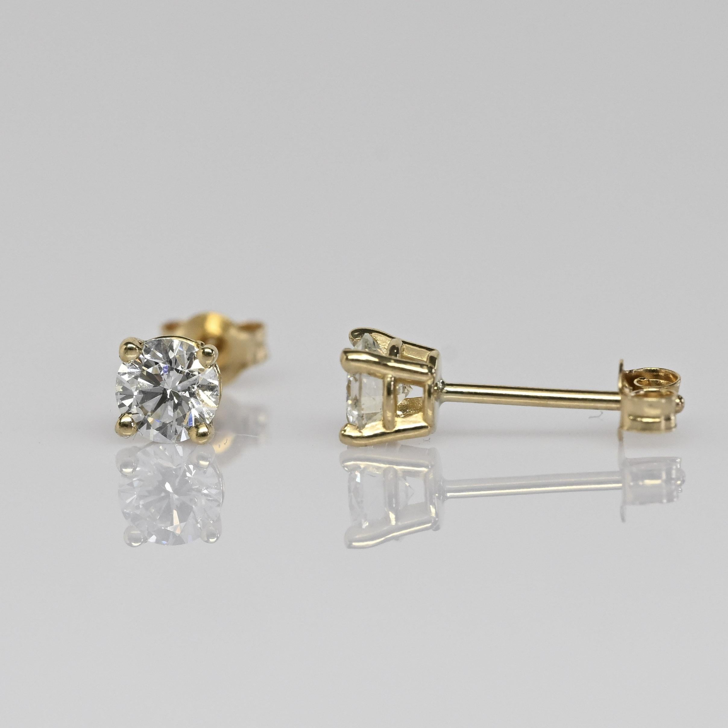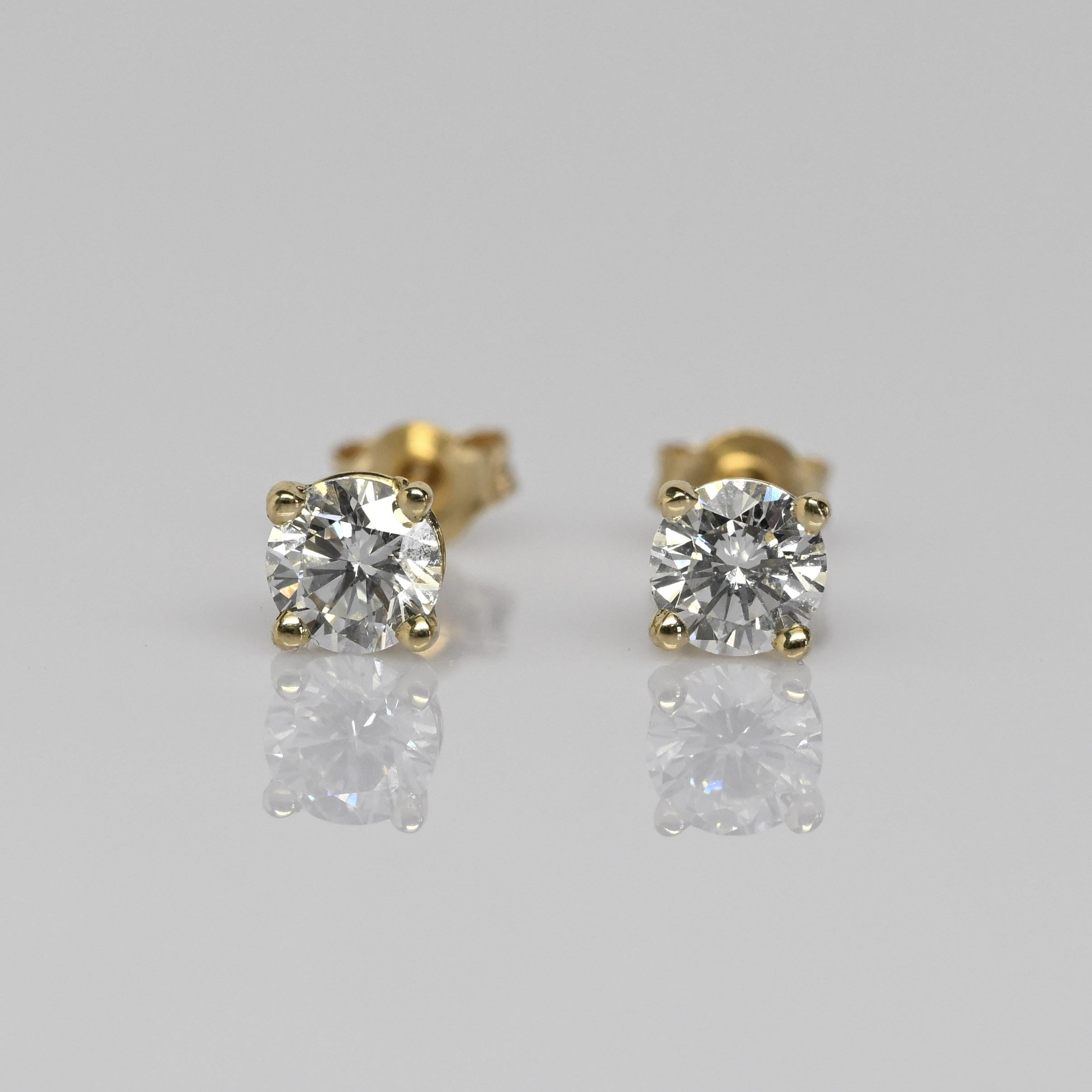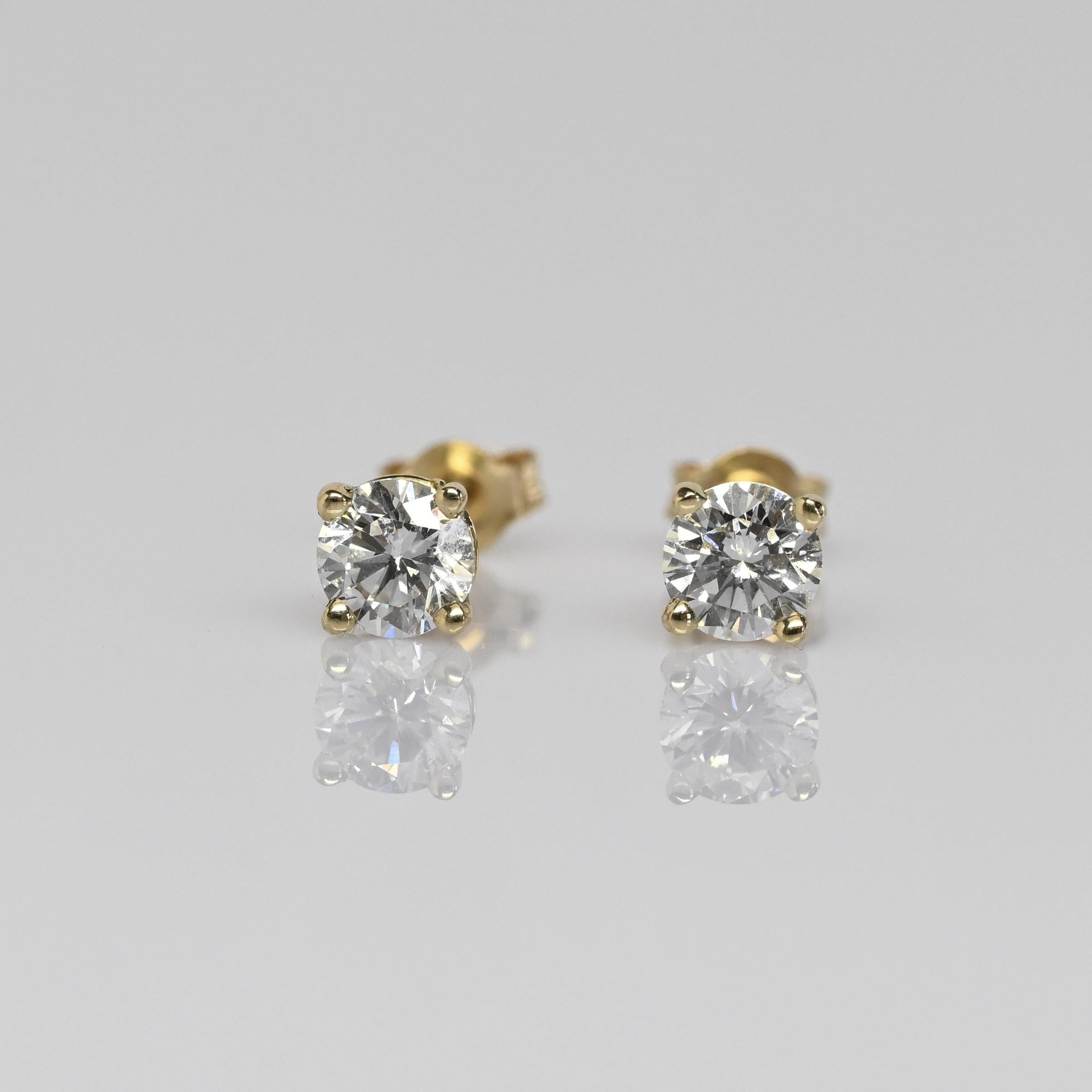 These new diamond stud earrings feature a total of 0.49 carats of natural round brilliant diamonds set in classic 14k yellow gold. The four-prong settings allow maximum light to enhance each diamond’s sparkle while providing a secure, timeless design. Their clean and versatile style makes them perfect for everyday wear or effortless layering. A beautiful staple piece that adds just the right touch of brilliance to any look.