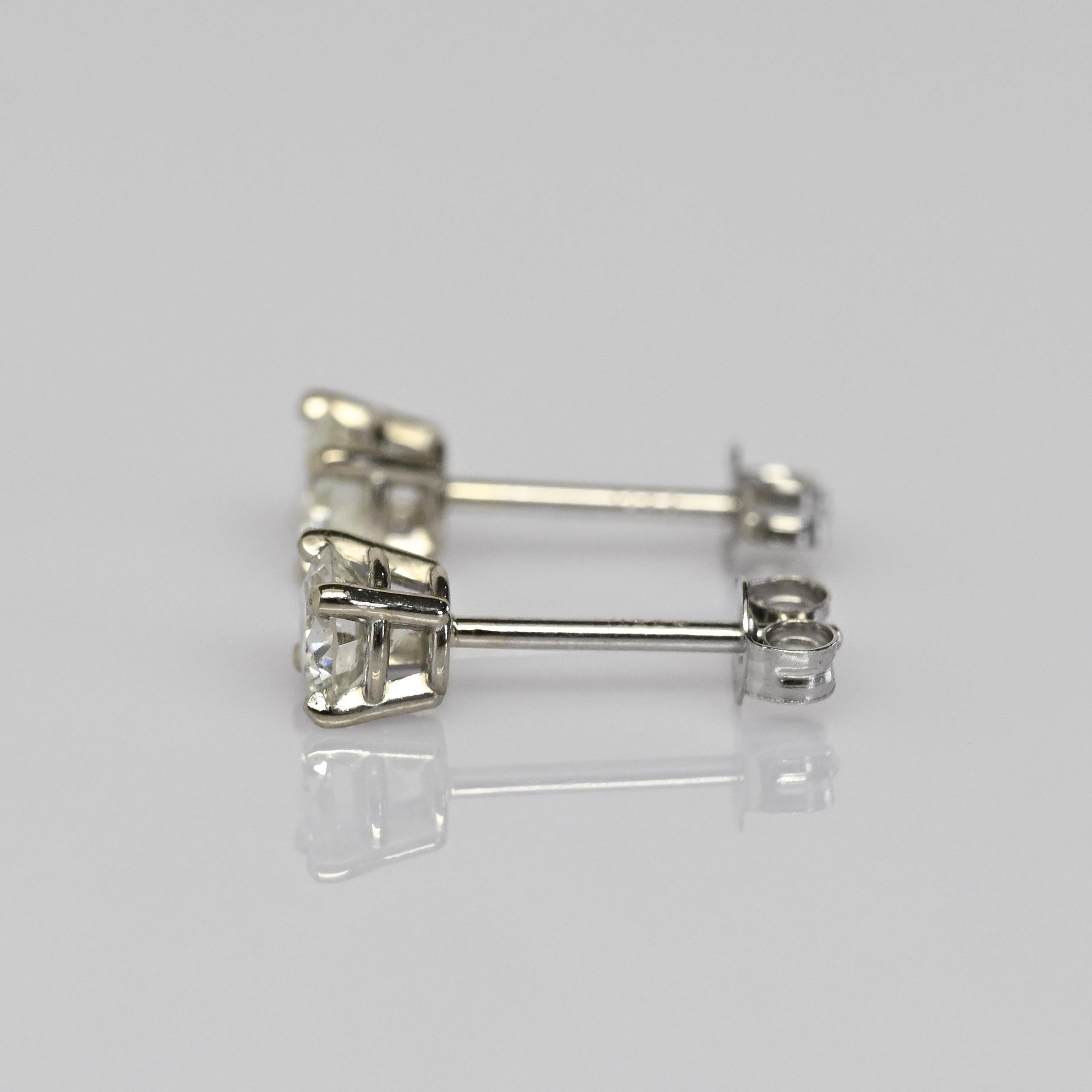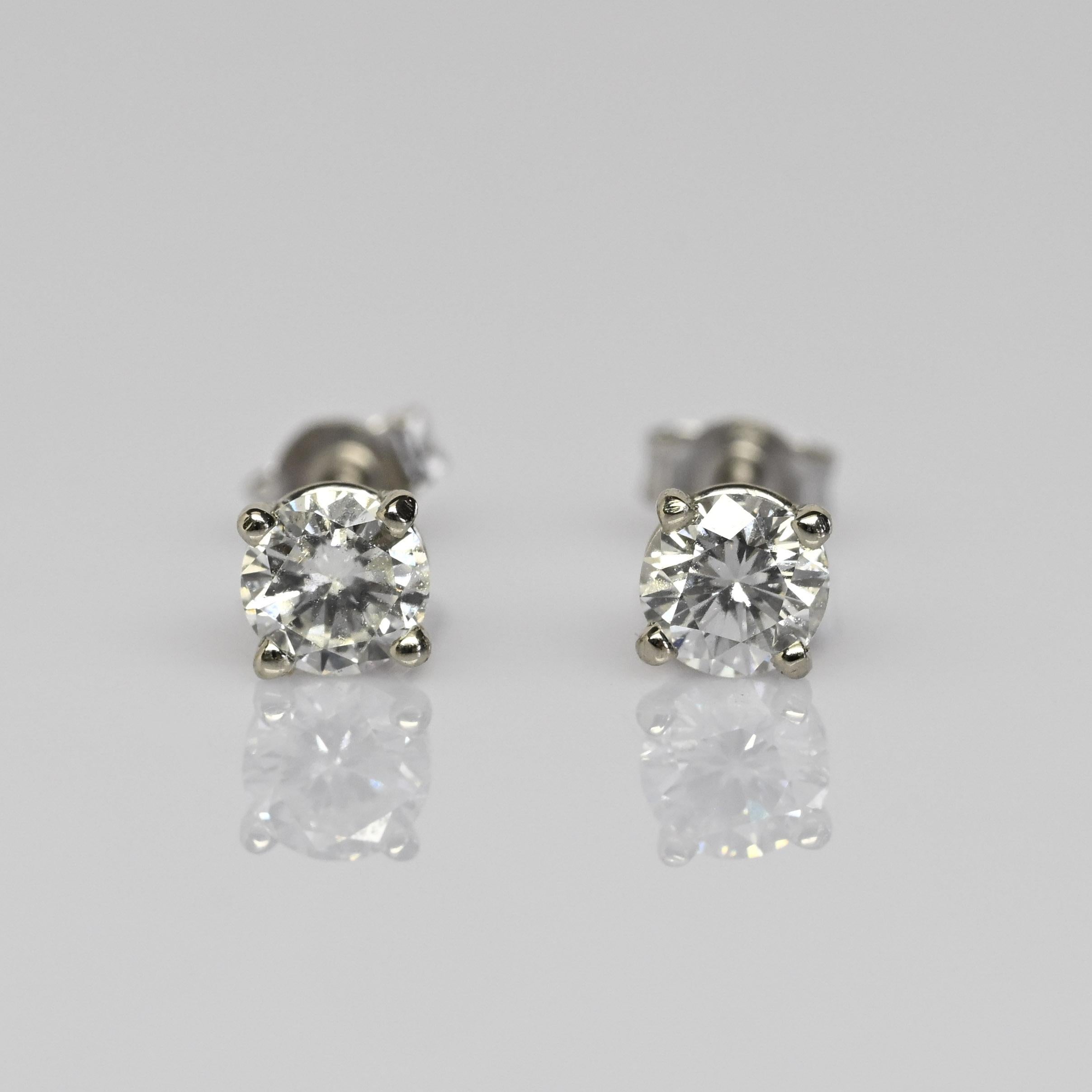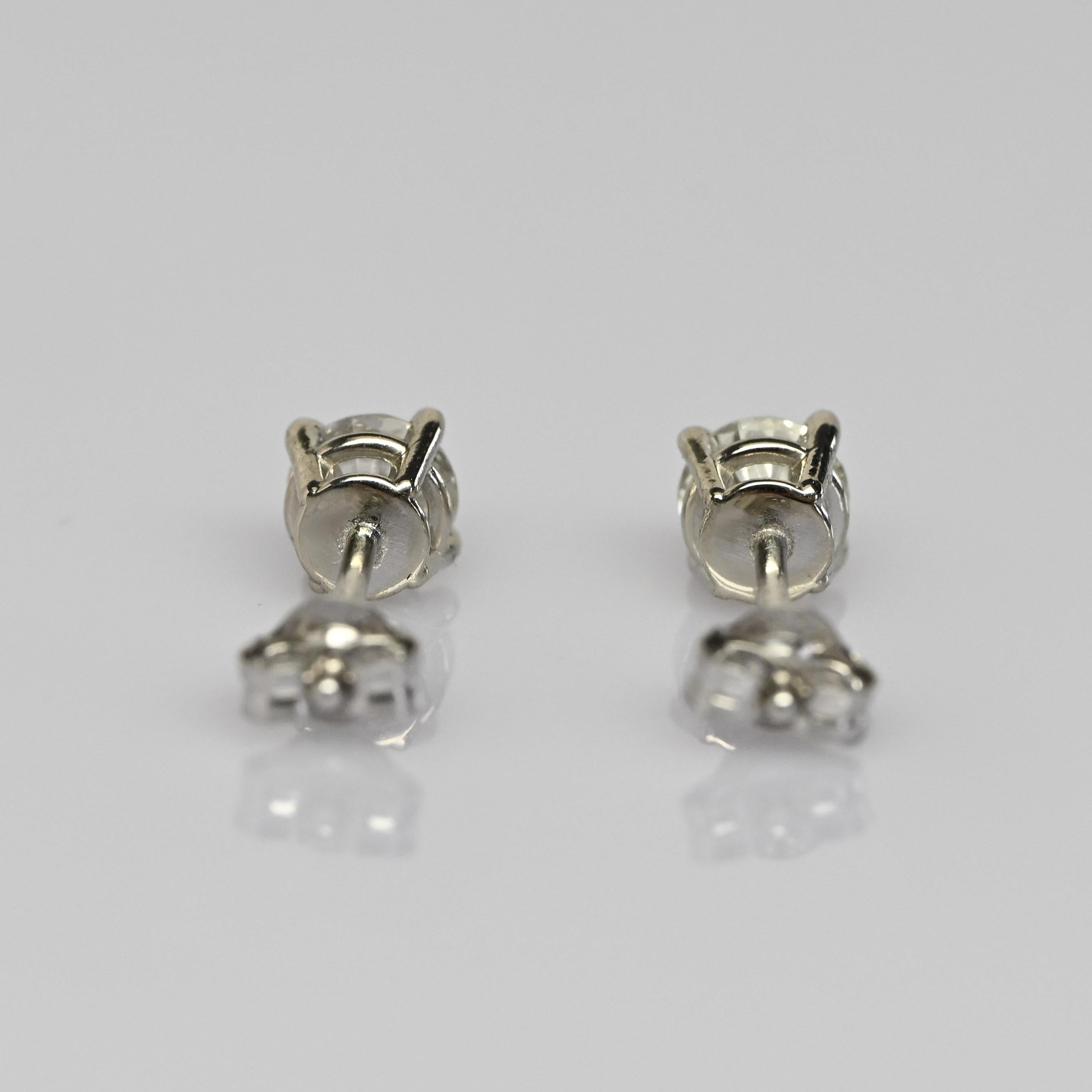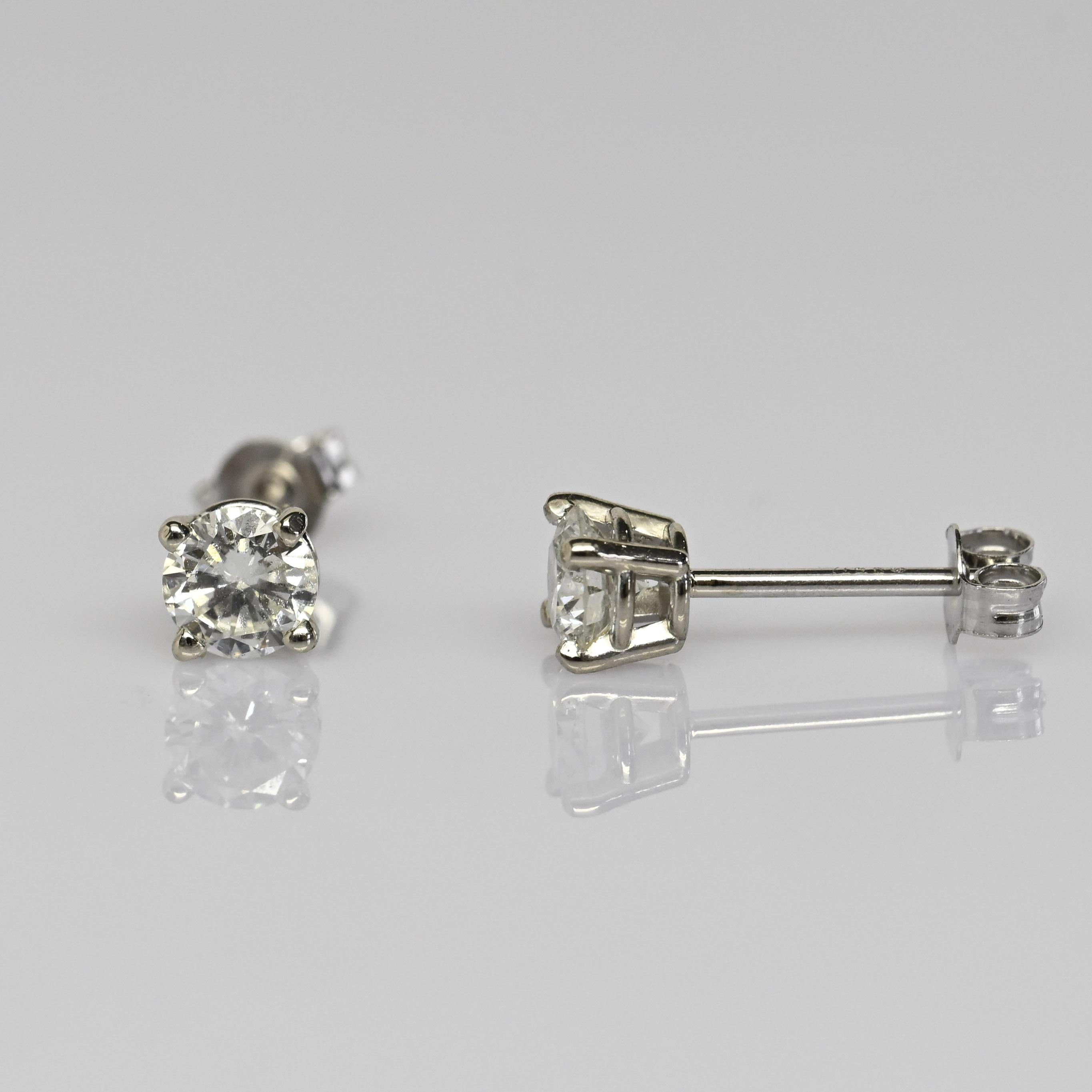 These classic diamond stud earrings feature a total of 0.71 carats of sparkling round diamonds set in timeless 14k white gold. Secured in elegant four-prong settings, the diamonds offer beautiful brilliance and everyday versatility. A perfect staple piece, these studs transition effortlessly from daily wear to special occasions.