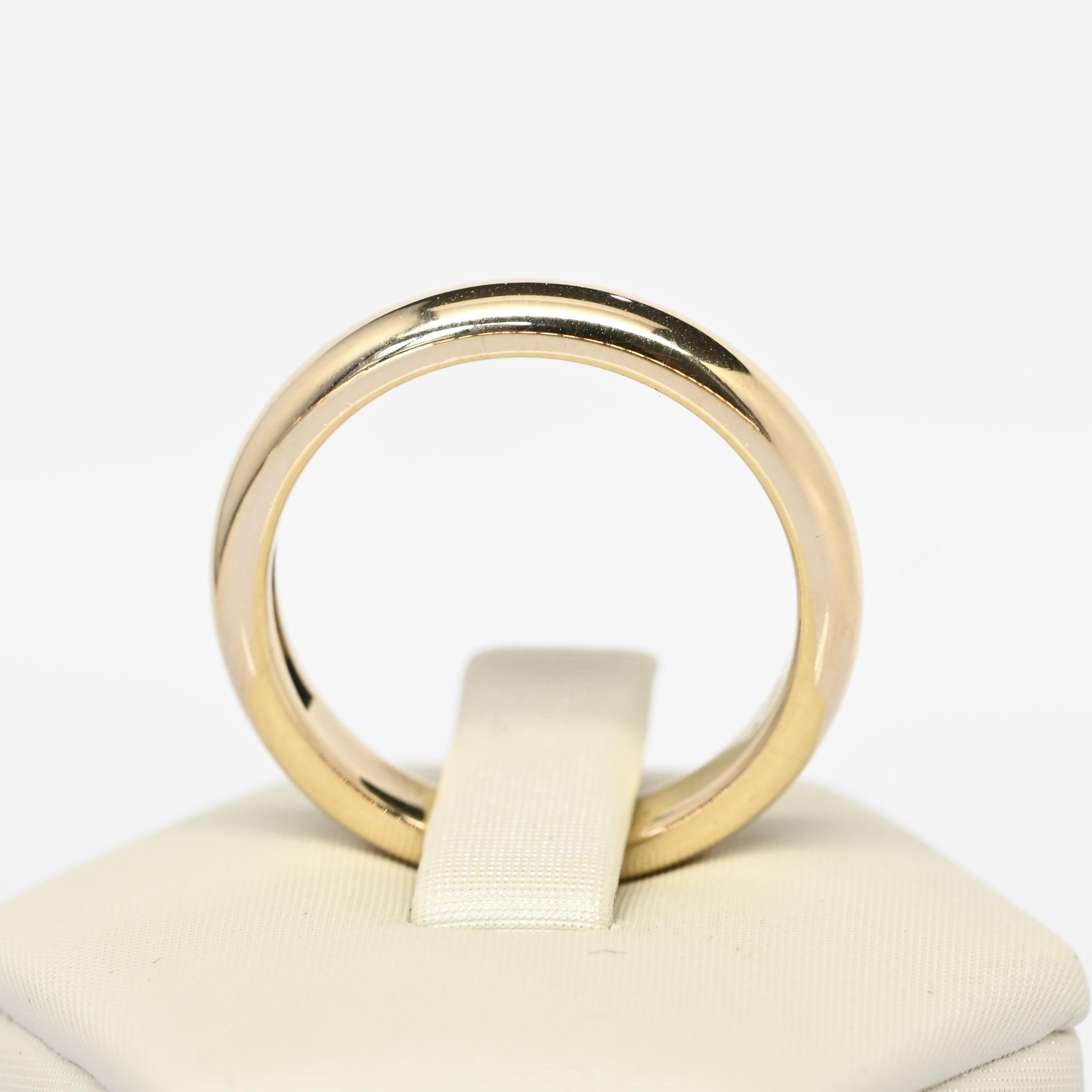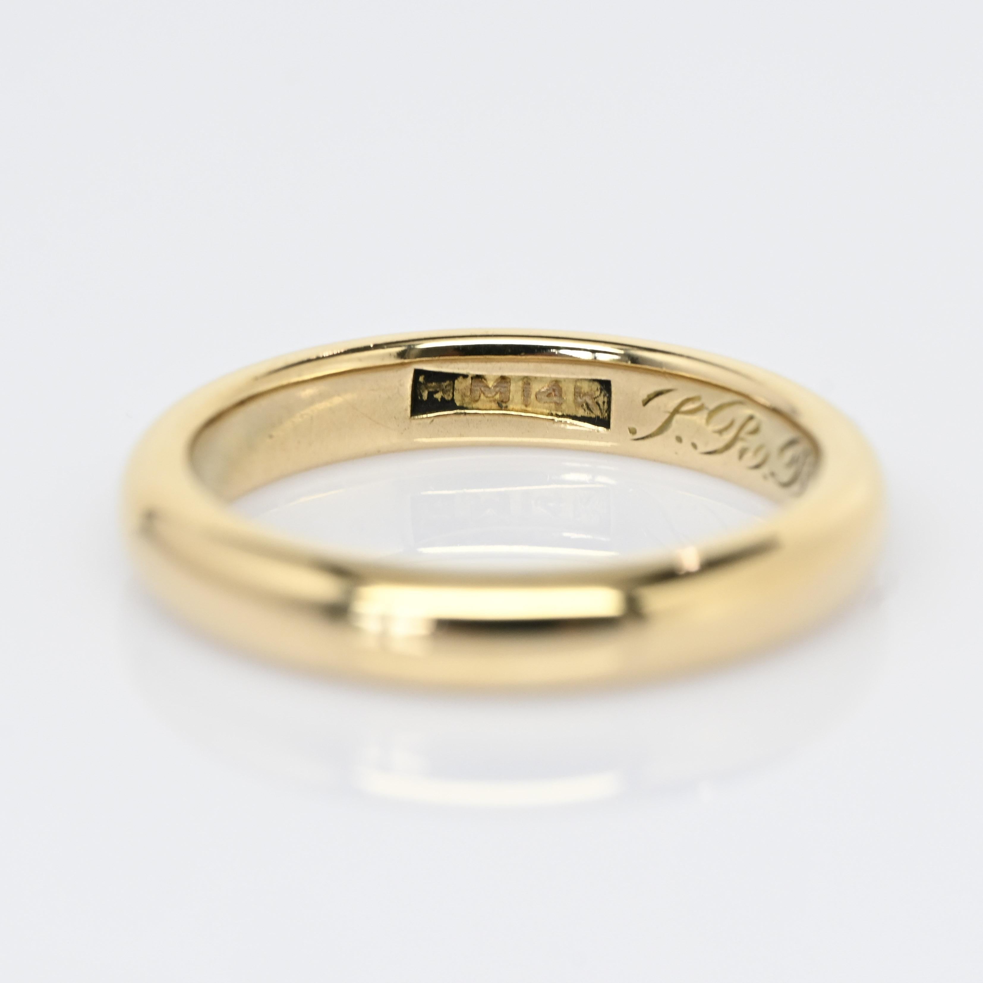 This vintage 14k yellow gold wedding band is a timeless symbol of love and commitment. Its smooth, polished surface offers a classic and elegant look, perfect for daily wear. Personalized with an inscription inside, it carries a meaningful touch that makes it uniquely special. A piece full of both simplicity and sentiment, it’s a cherished reminder of lasting devotion.