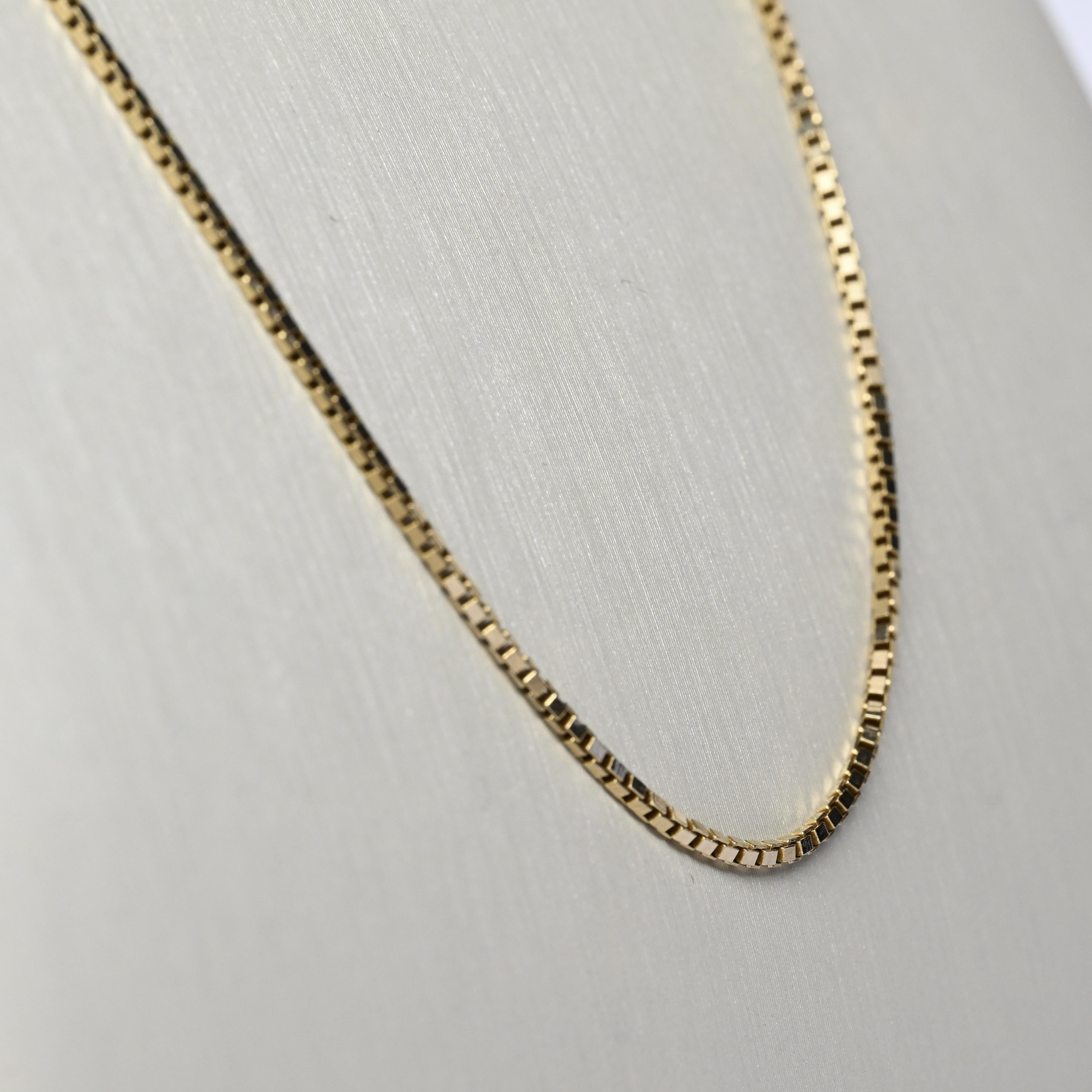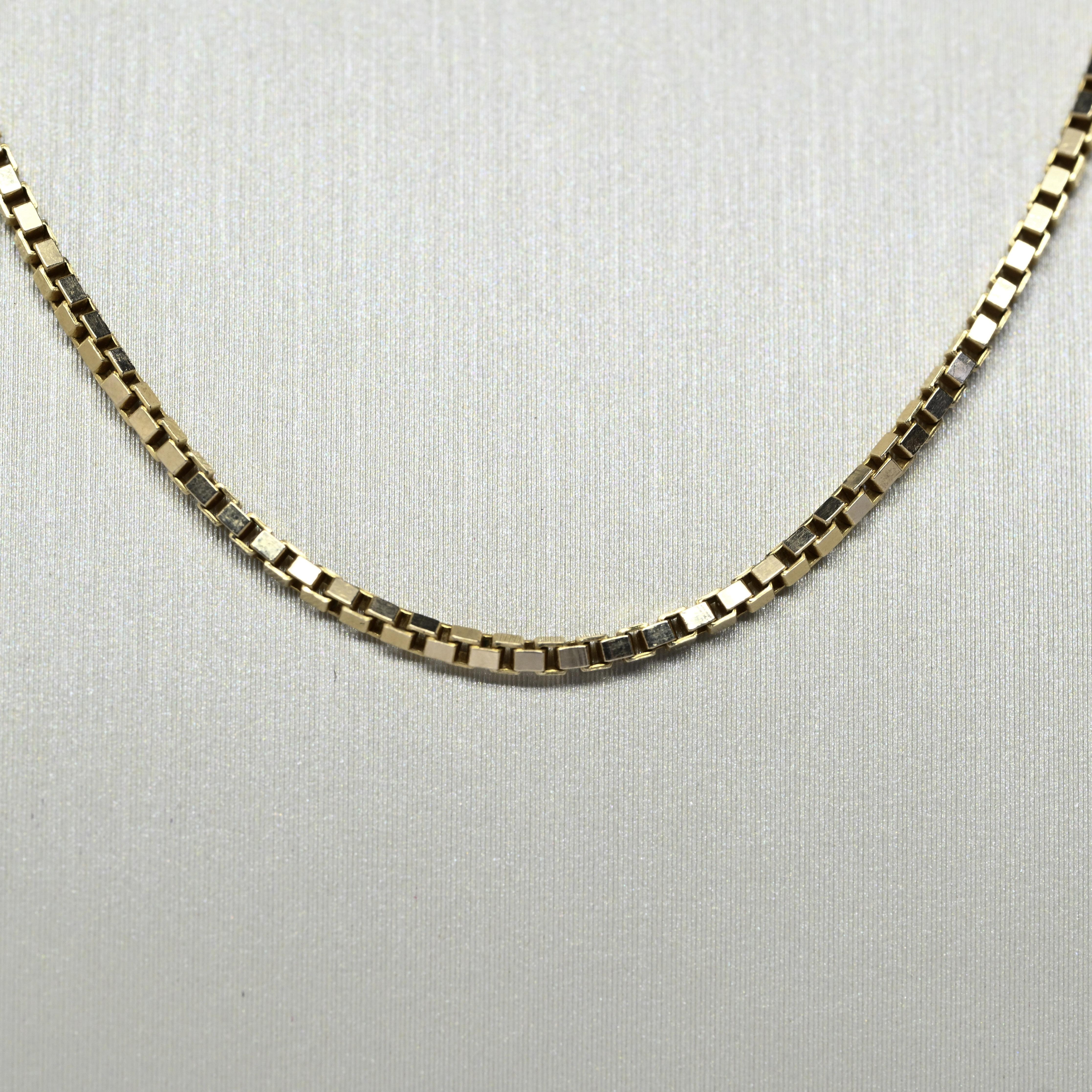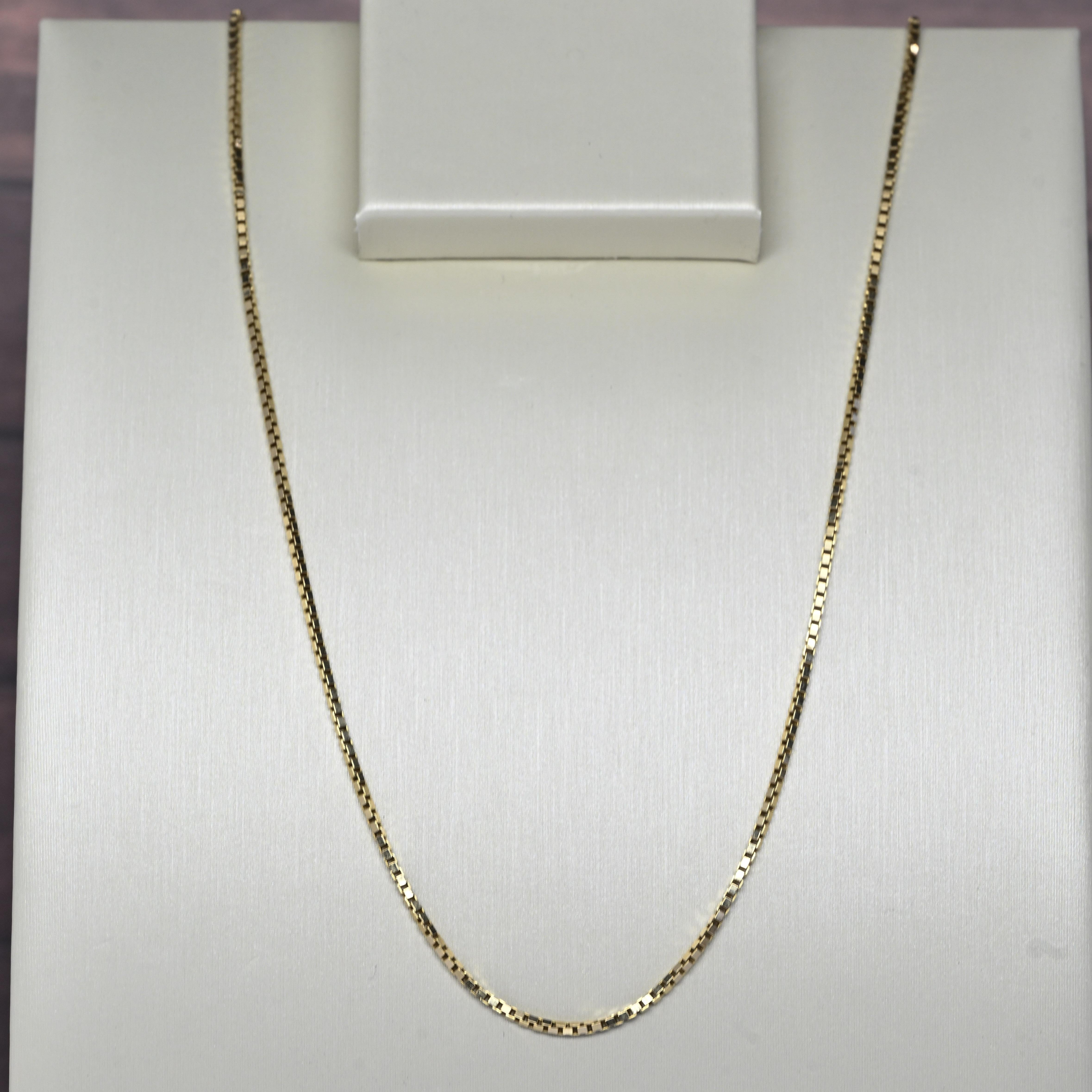 This classic box chain necklace is crafted in luminous 14K yellow gold and measures a versatile 17 inches in length. The sleek, square links create a smooth, refined look with excellent durability and a beautiful polished finish. Perfect for wearing on its own or paired with a favorite pendant, this chain offers timeless style and everyday wearability. A staple piece that belongs in every fine jewelry collection.