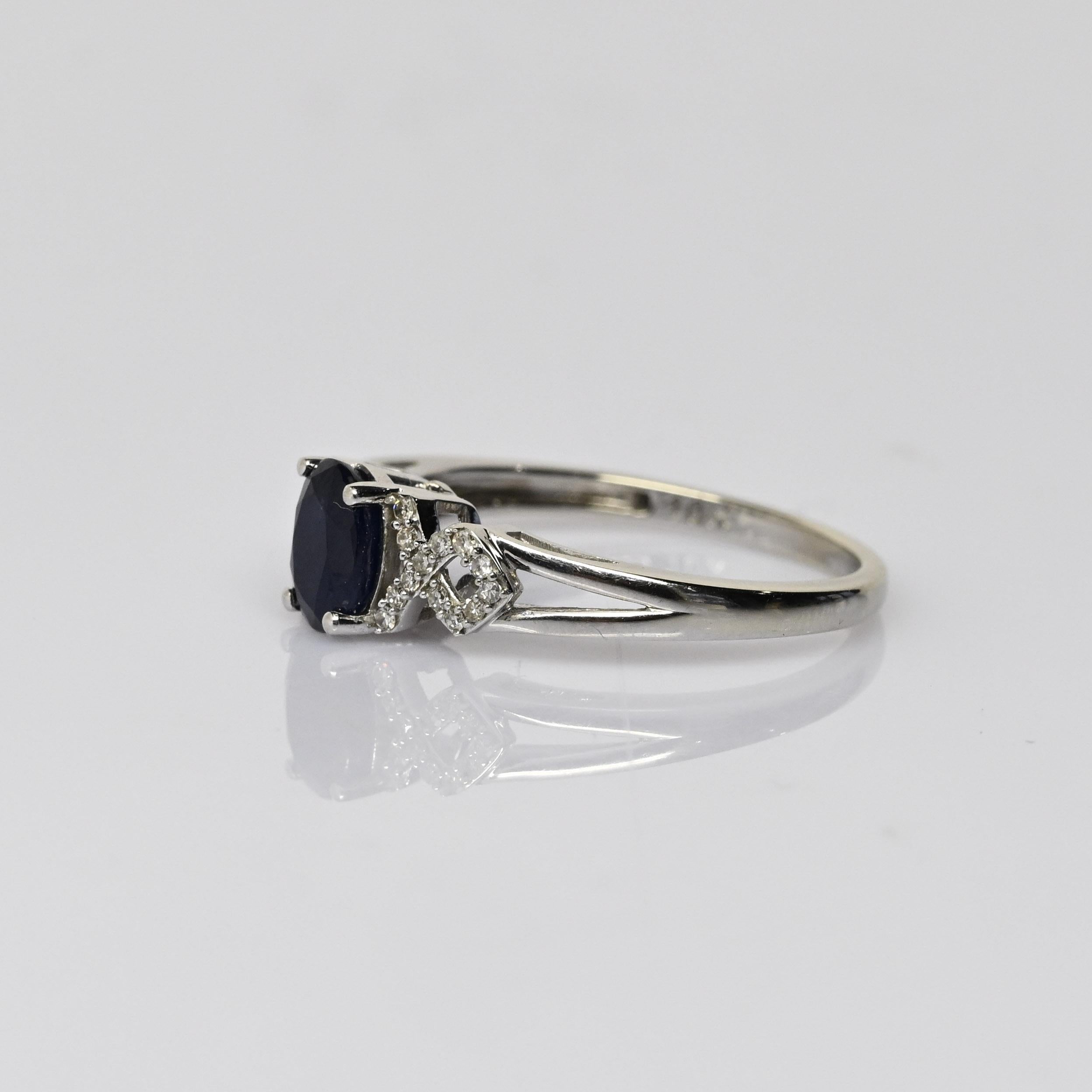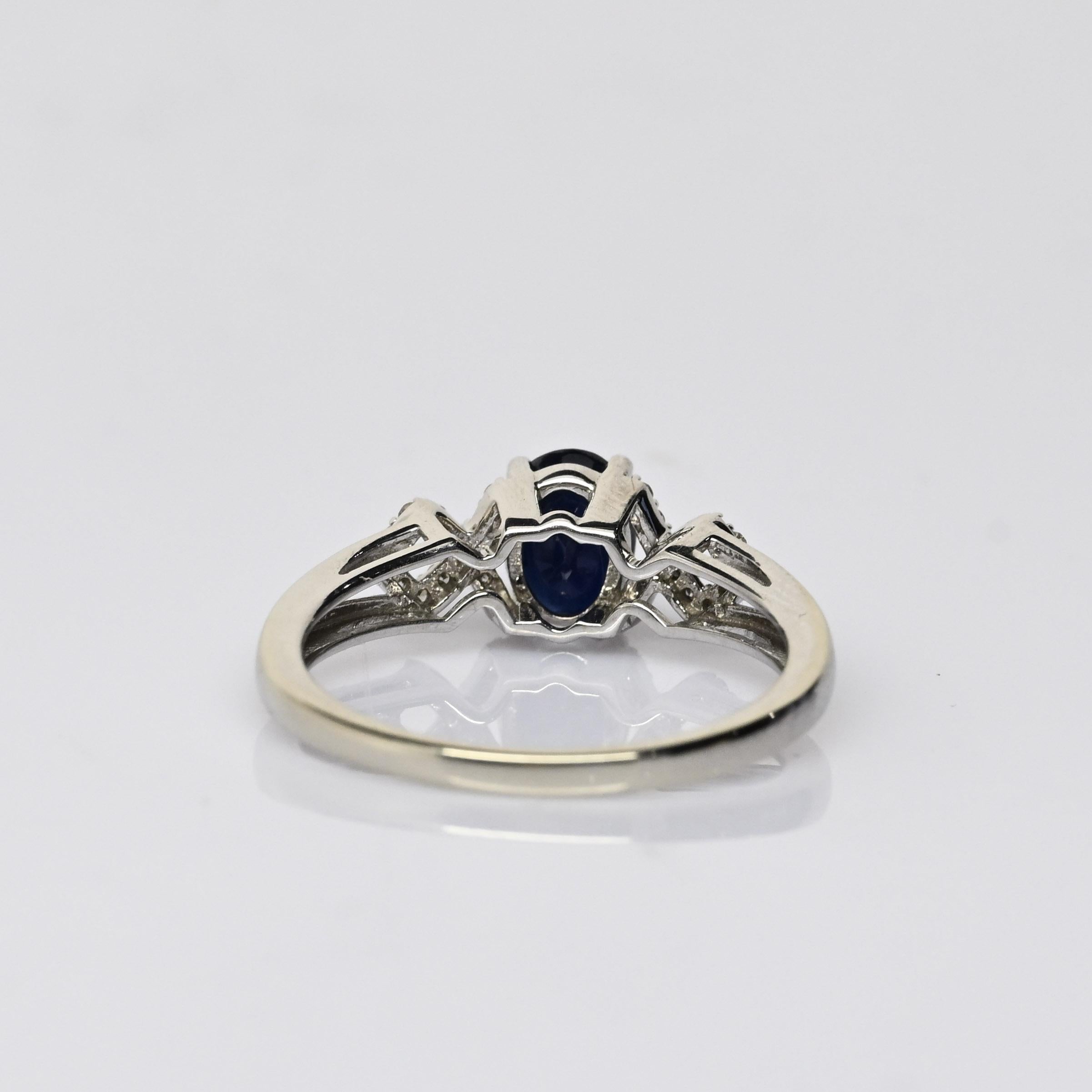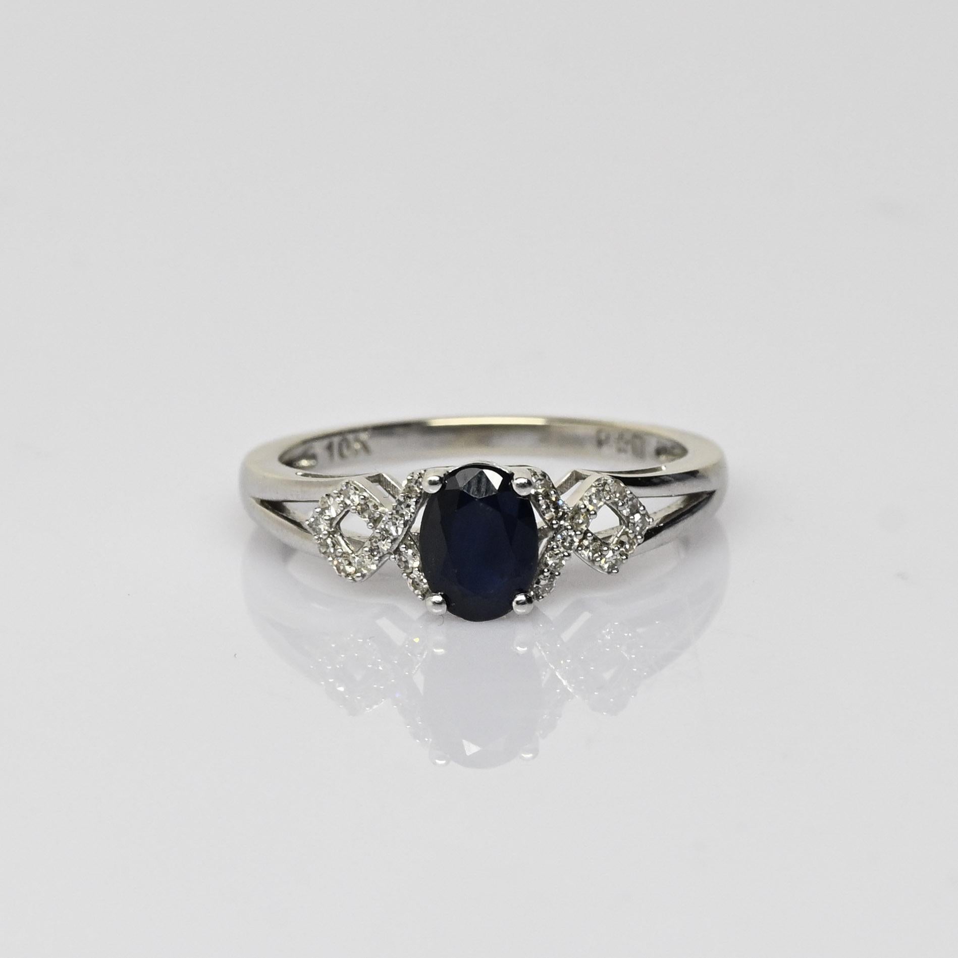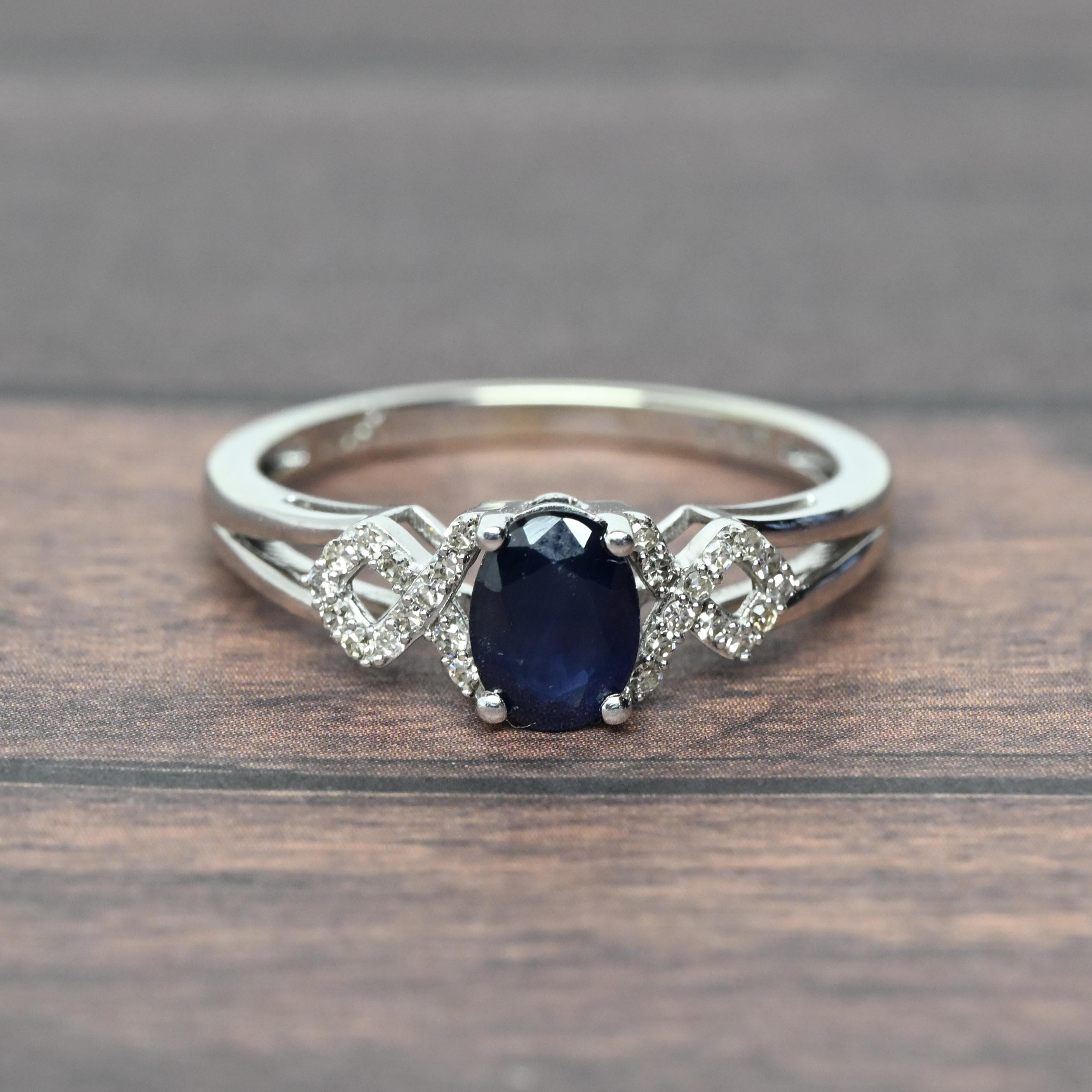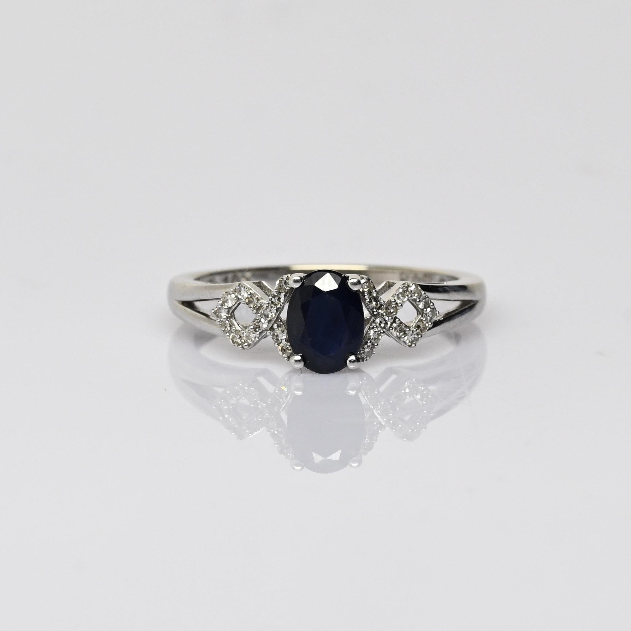 This Blue Sapphire Oval & Diamond White Gold Ring is a timeless blend of elegance and sparkle. The rich, deep-blue oval sapphire takes center stage, framed by gracefully twisting diamond-accented motifs that add brilliance and movement to the design. Set in polished white gold with a split-shank silhouette, it offers both modern style and classic charm. Perfect as a right-hand ring or a meaningful gift, this piece brings a touch of sophistication to any jewelry collection.
